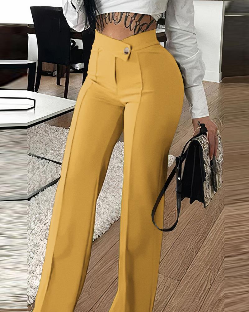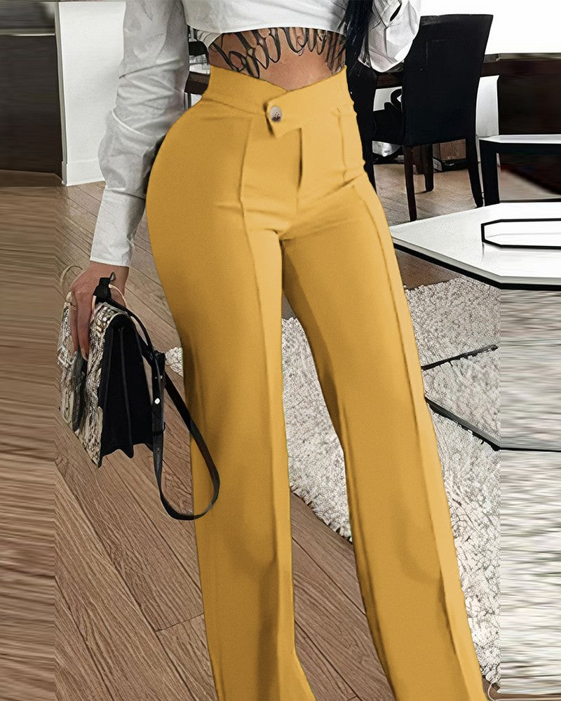 Buttoned Straight Leg Work Pants