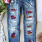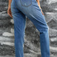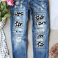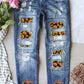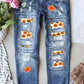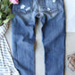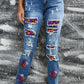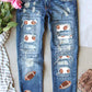 Sky Blue Sequin Pumpkin Patched Distressed Straight Leg Jeans