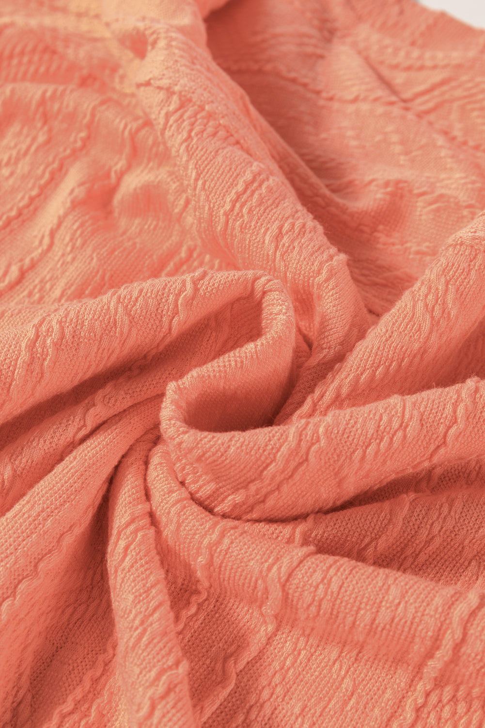 Pale Chestnut Textured Patched Pocket Short Sleeve Top Drawstring Shorts Set