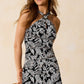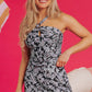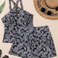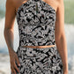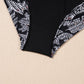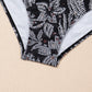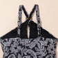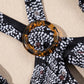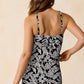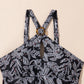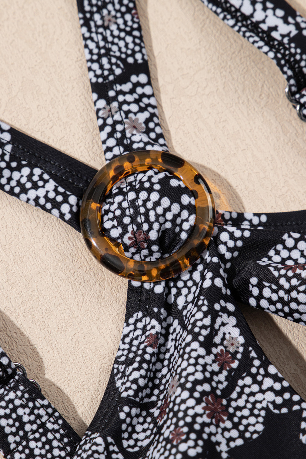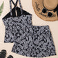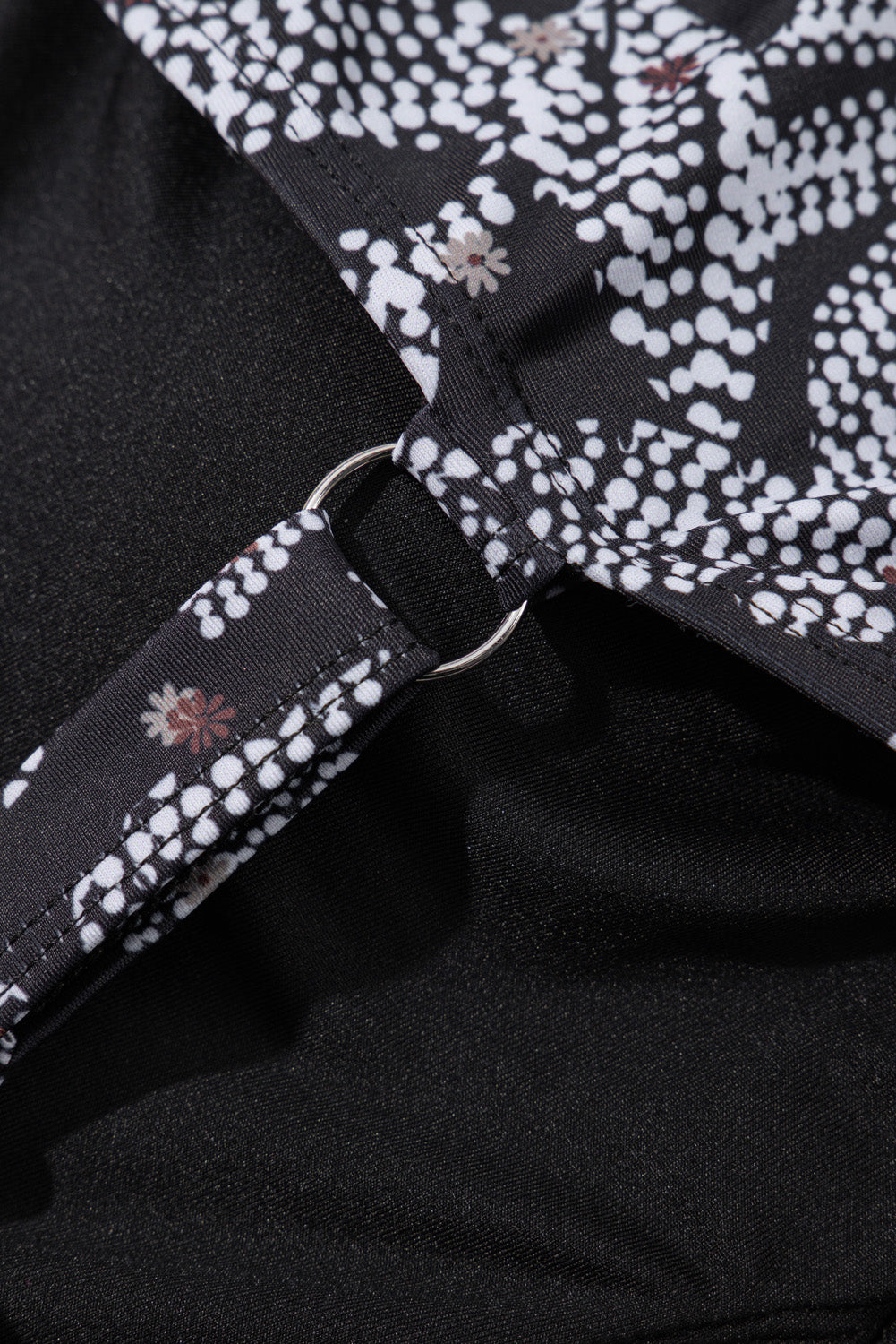 Black Abstract Printed Buckle Crossed Straps Skirted Tankini 2pcs Swimsuit