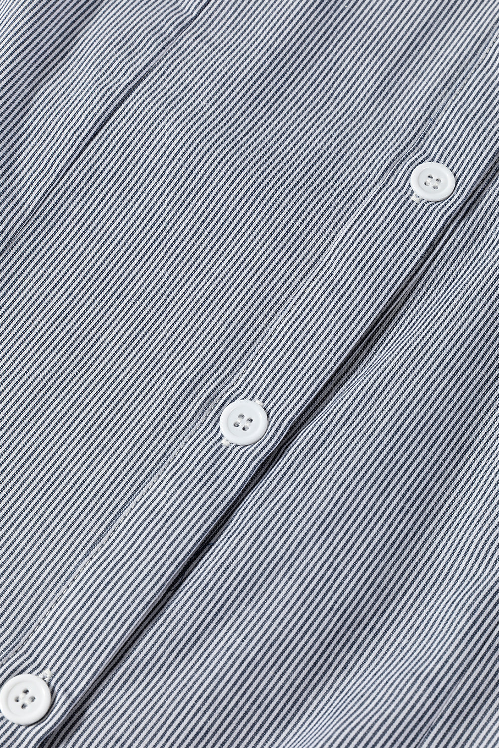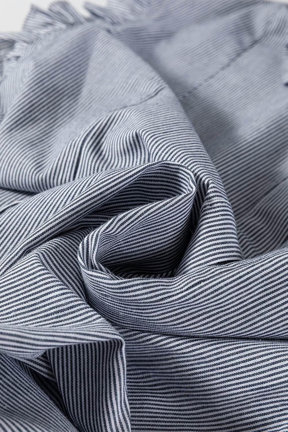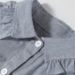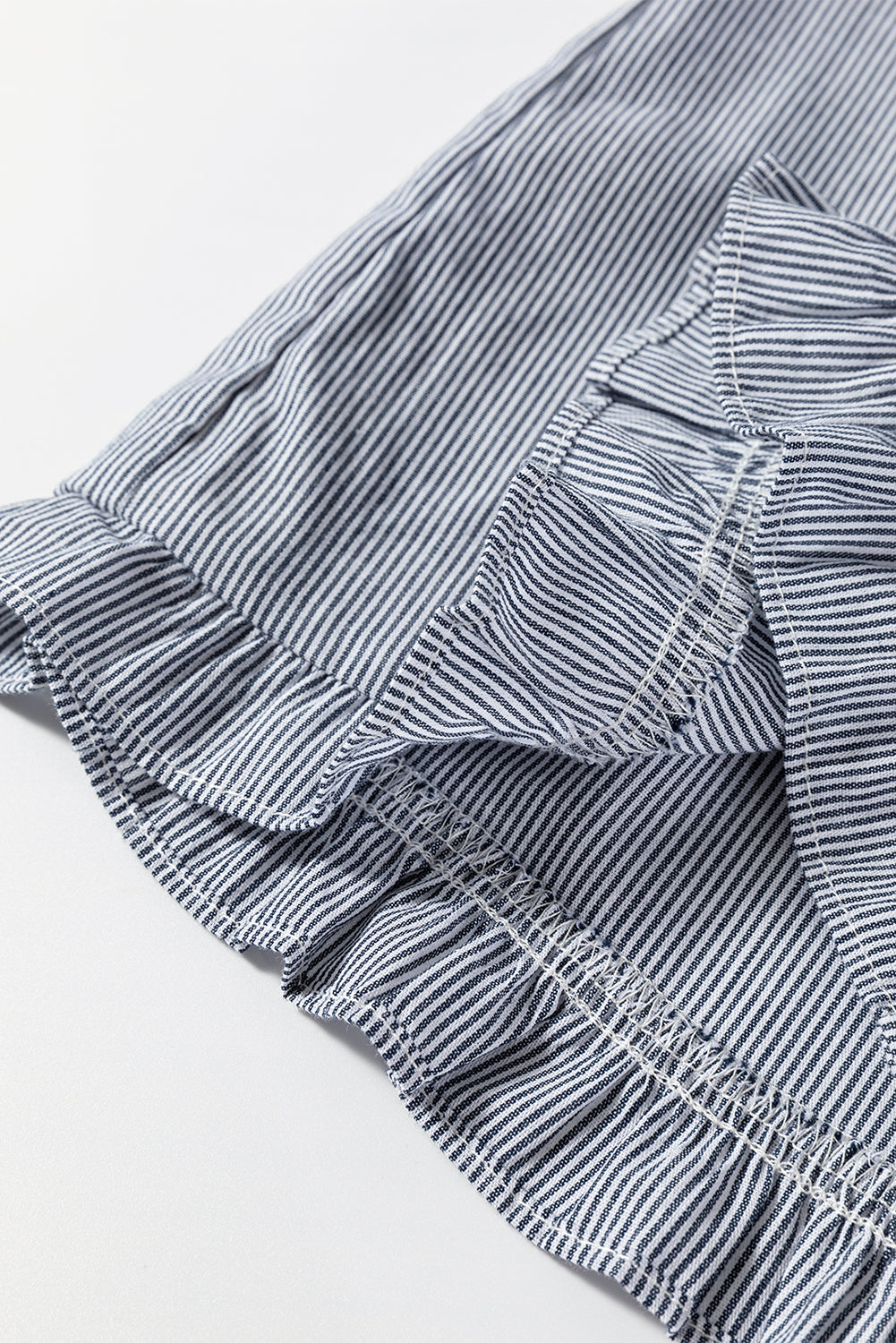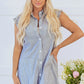Blue Stripe Frilled Sleeveless Collar Front Pocket Button Up Mini Dress