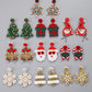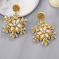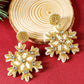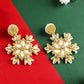 Gold Christmas Snowflake Rhinestone Rice Beaded Drop Earrings