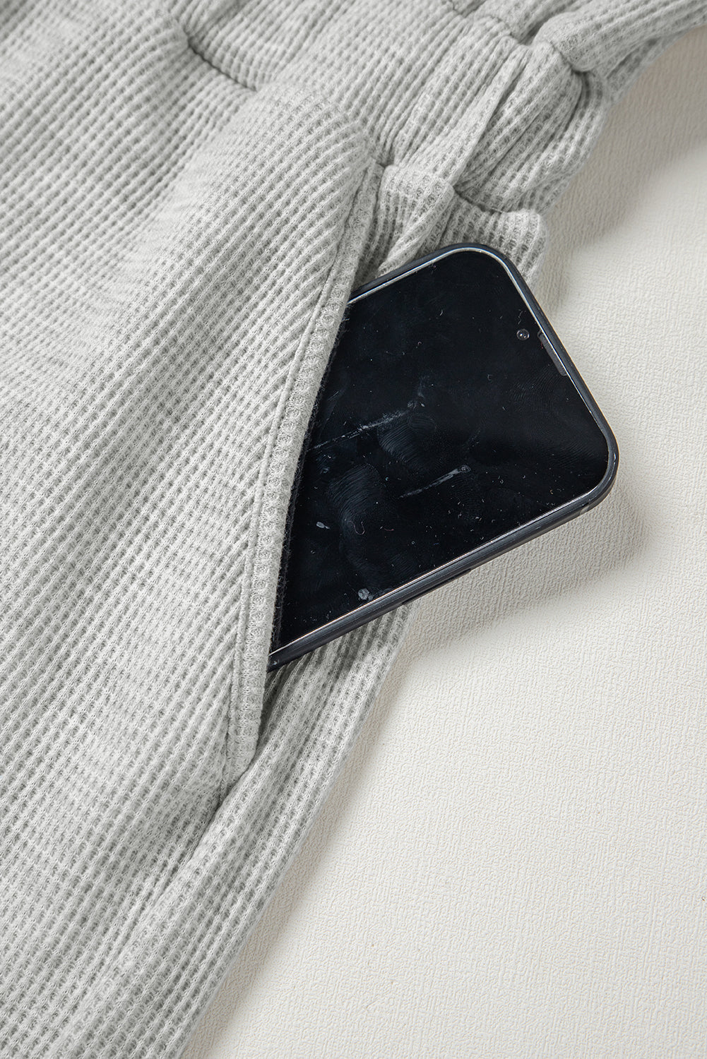 Light Grey Waffle Knit Sleeveless Buttoned Front Drawstring Waist Romper