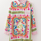 Multicolour Boho Floral Print Buttoned Long Sleeve Shirt Dress