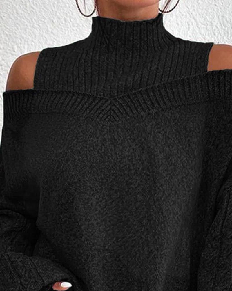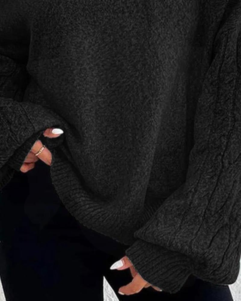 Cable Knit Lantern Sleeve Cold Shoulder Sweater