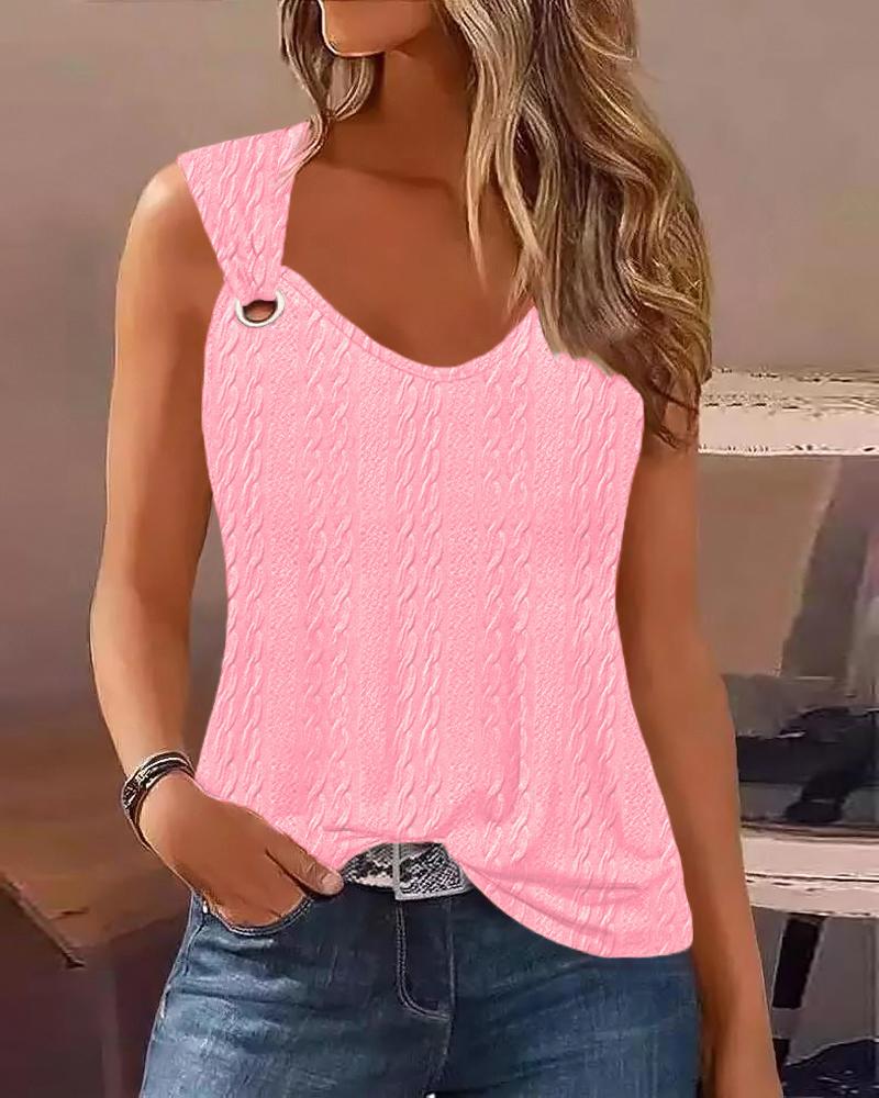Cable Textured Eyelet Casual Tank Top