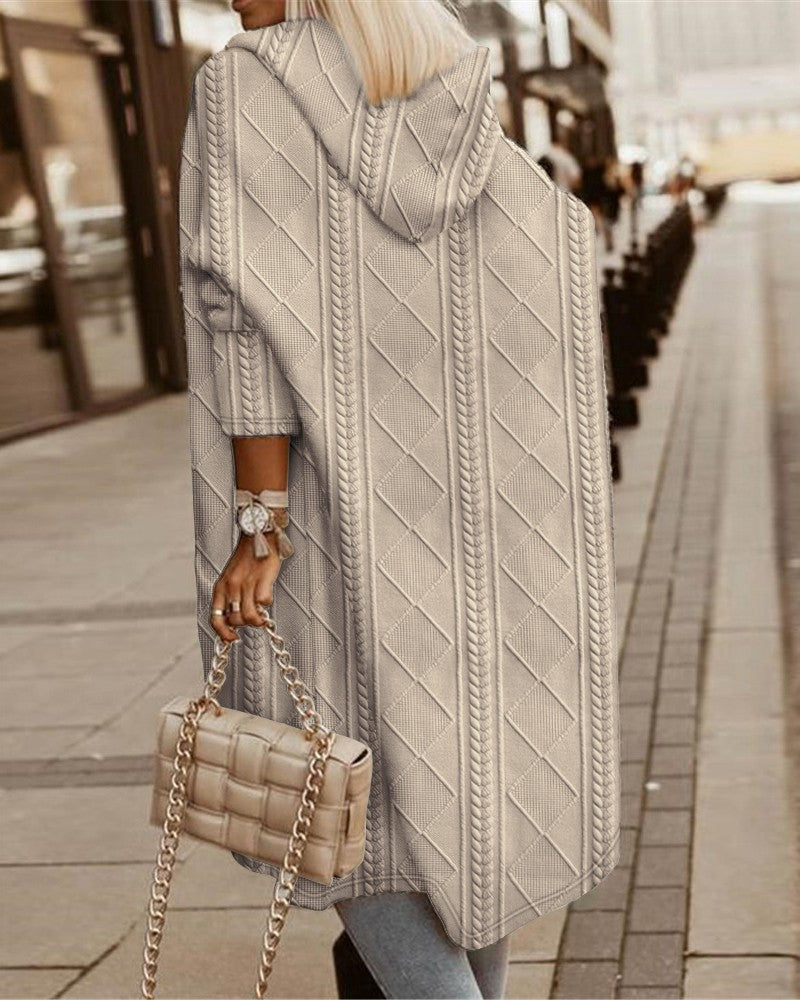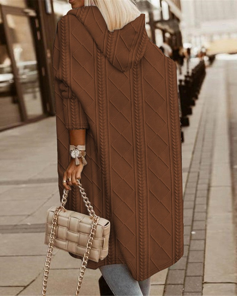 Stay cozy yet stylish in this Cable Textured Hooded Longline Coat. Crafted from premium material and designed to keep you warm, it's an ideal piece for chilly days. The unique cable texture adds a touch of luxury, making it the perfect choice for those seeking sophistication.