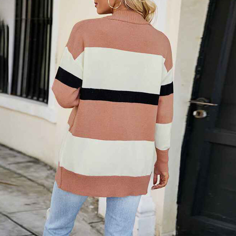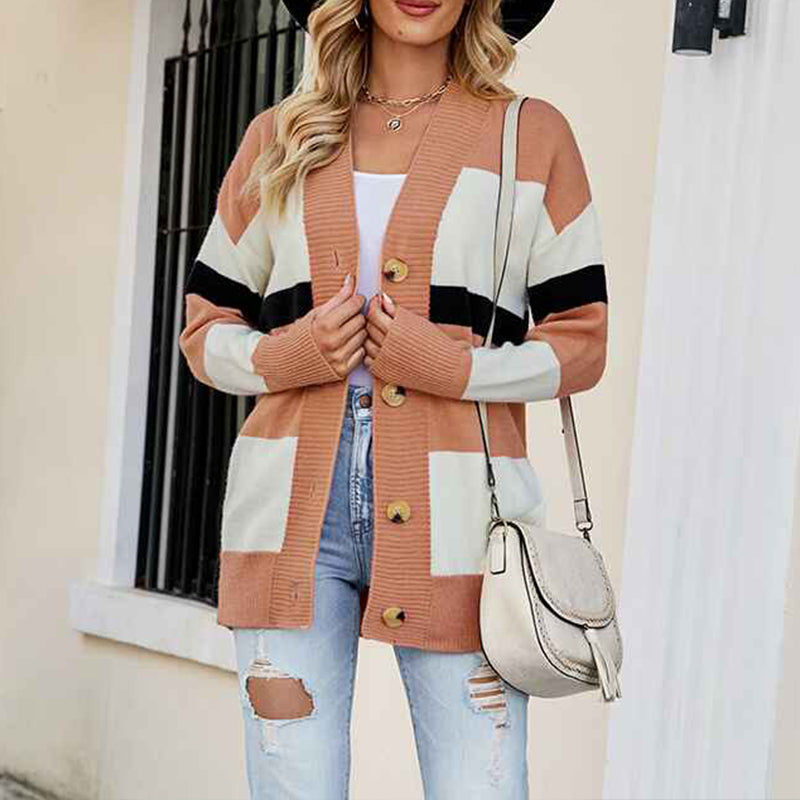 Women Striped Cardigan Sweater Open Front Button Down Cardigan Coat Outwear K498