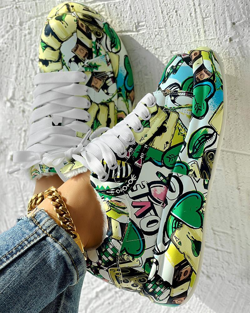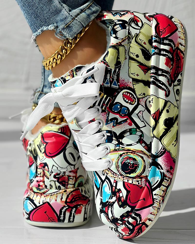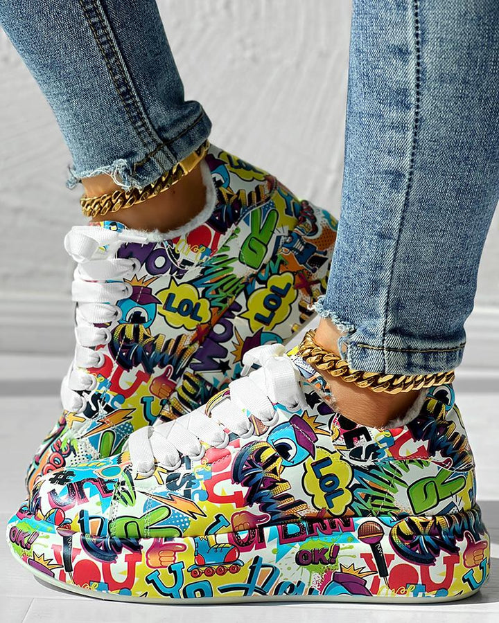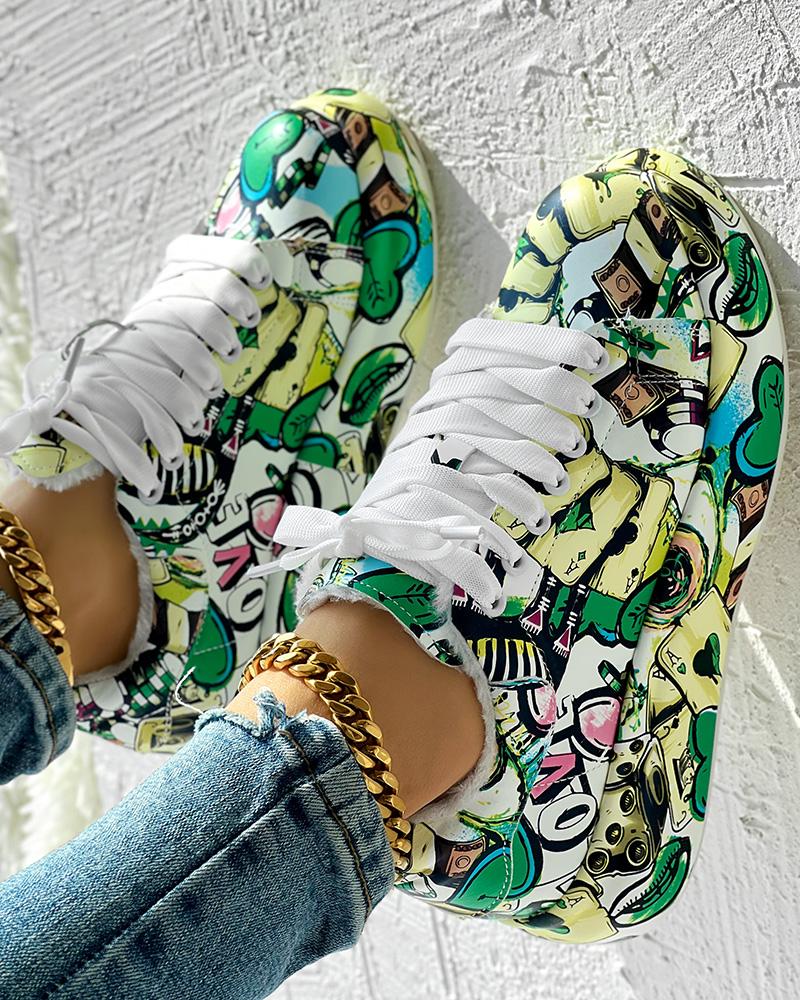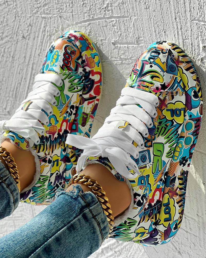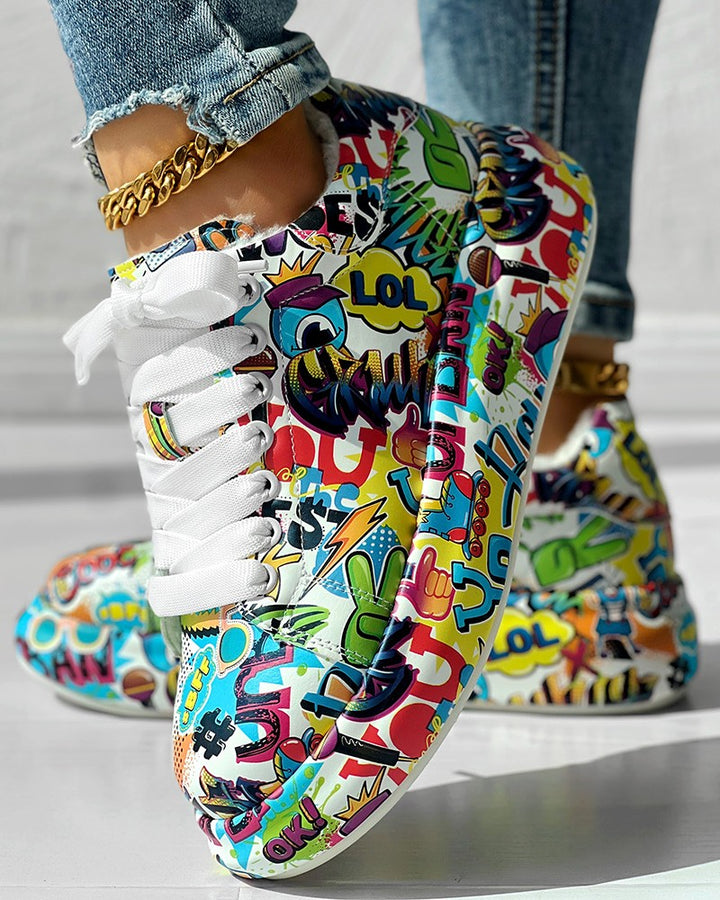 Cartoon Graphic Letter Lace up Lined Sneakers