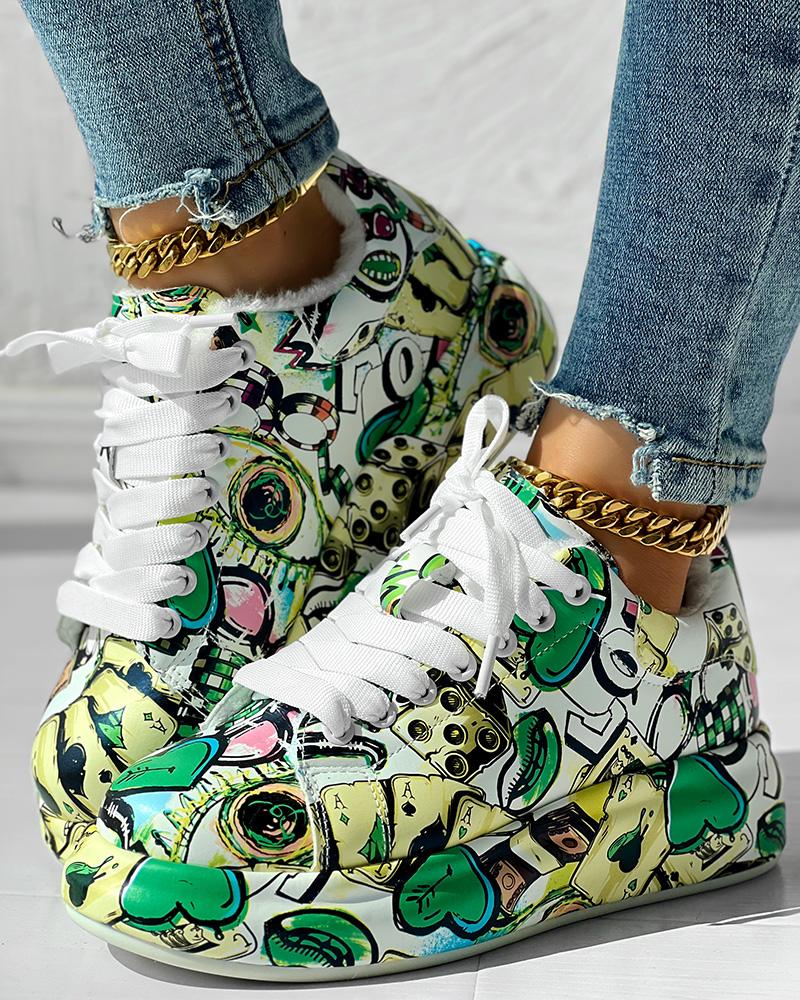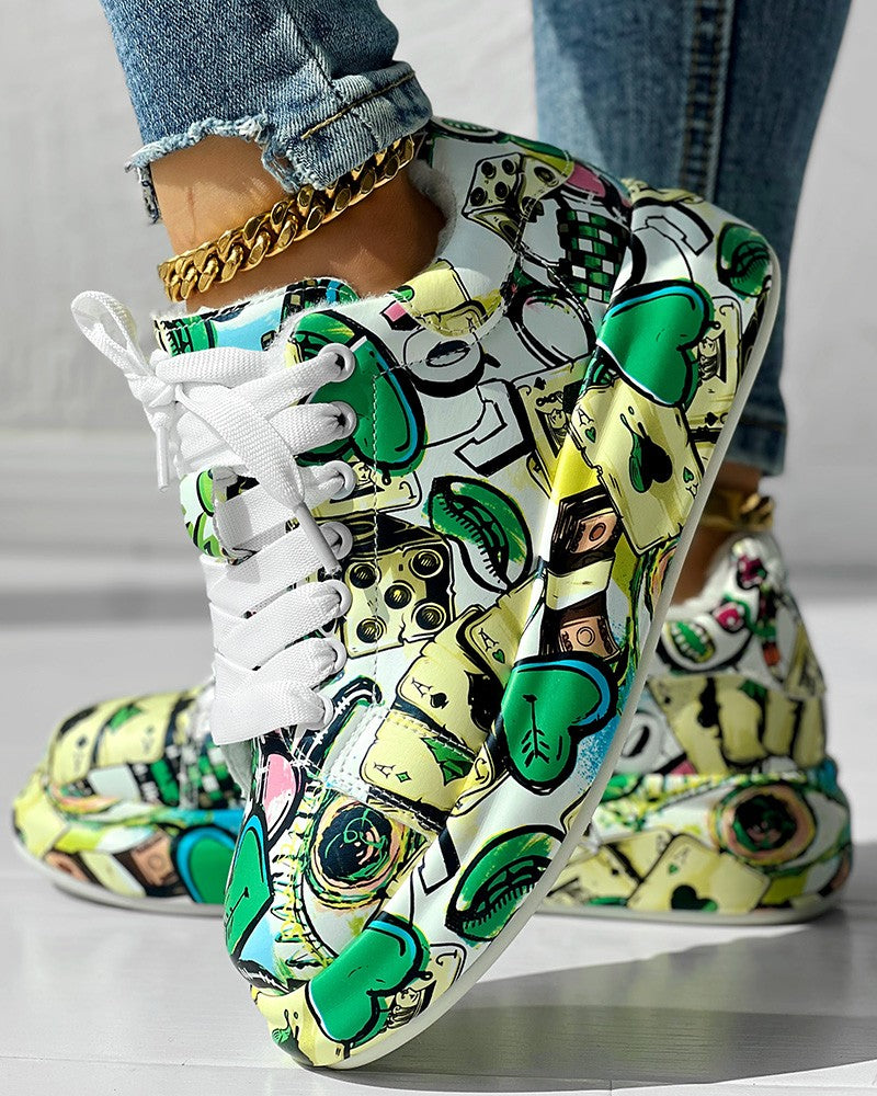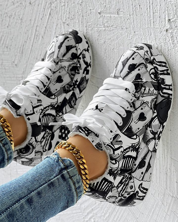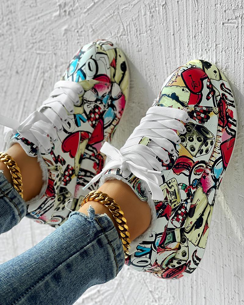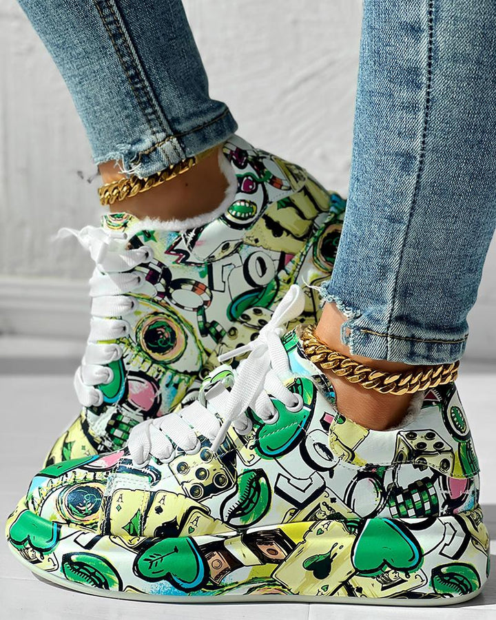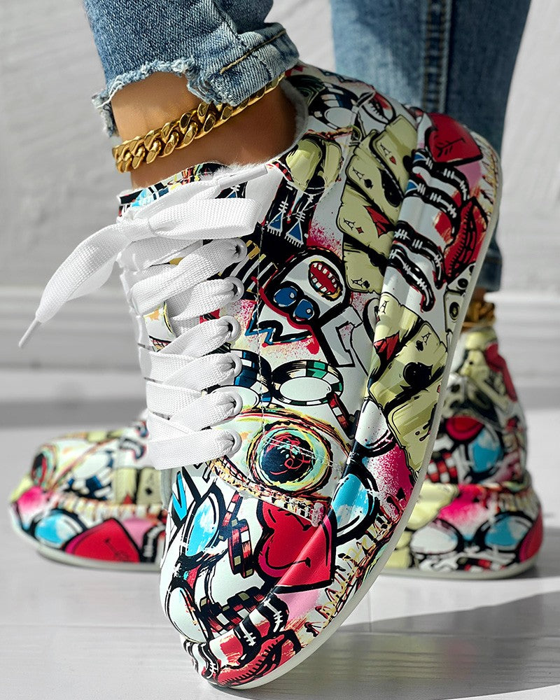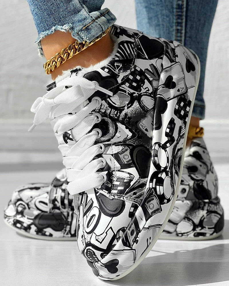 Cartoon Graphic Letter Lace up Lined Sneakers