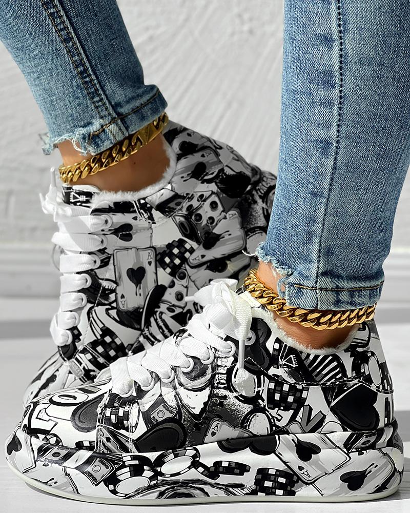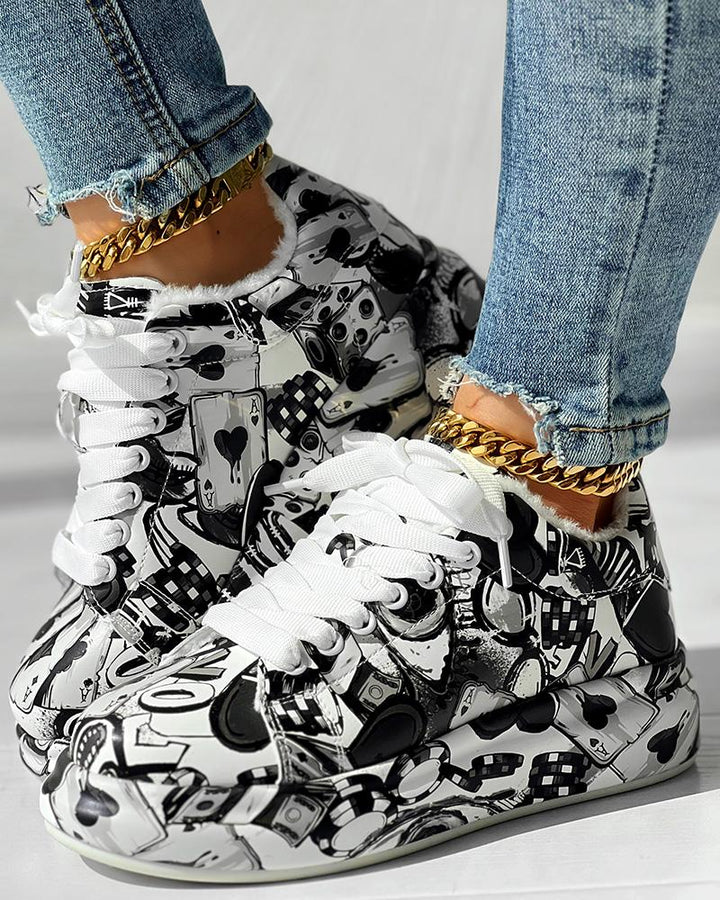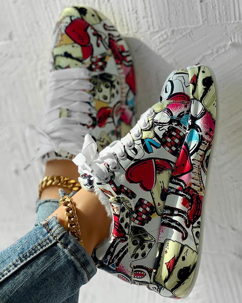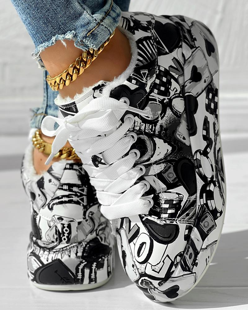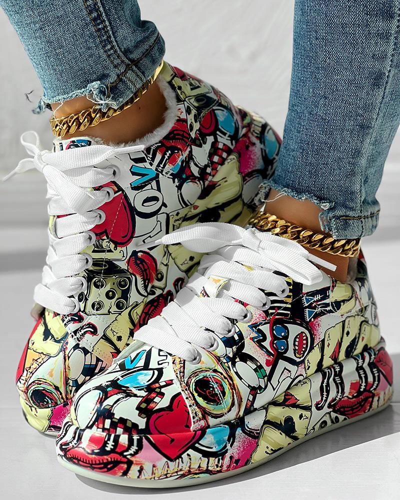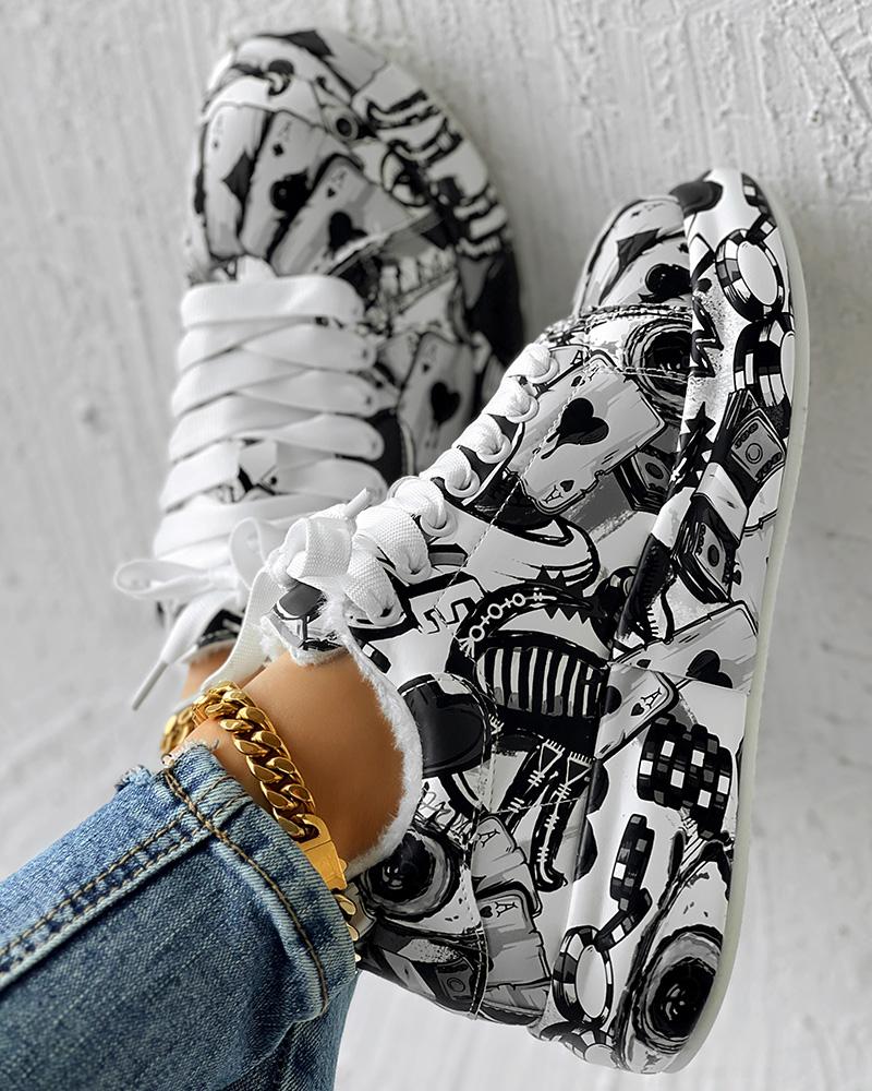 Cartoon Graphic Letter Lace up Lined Sneakers
