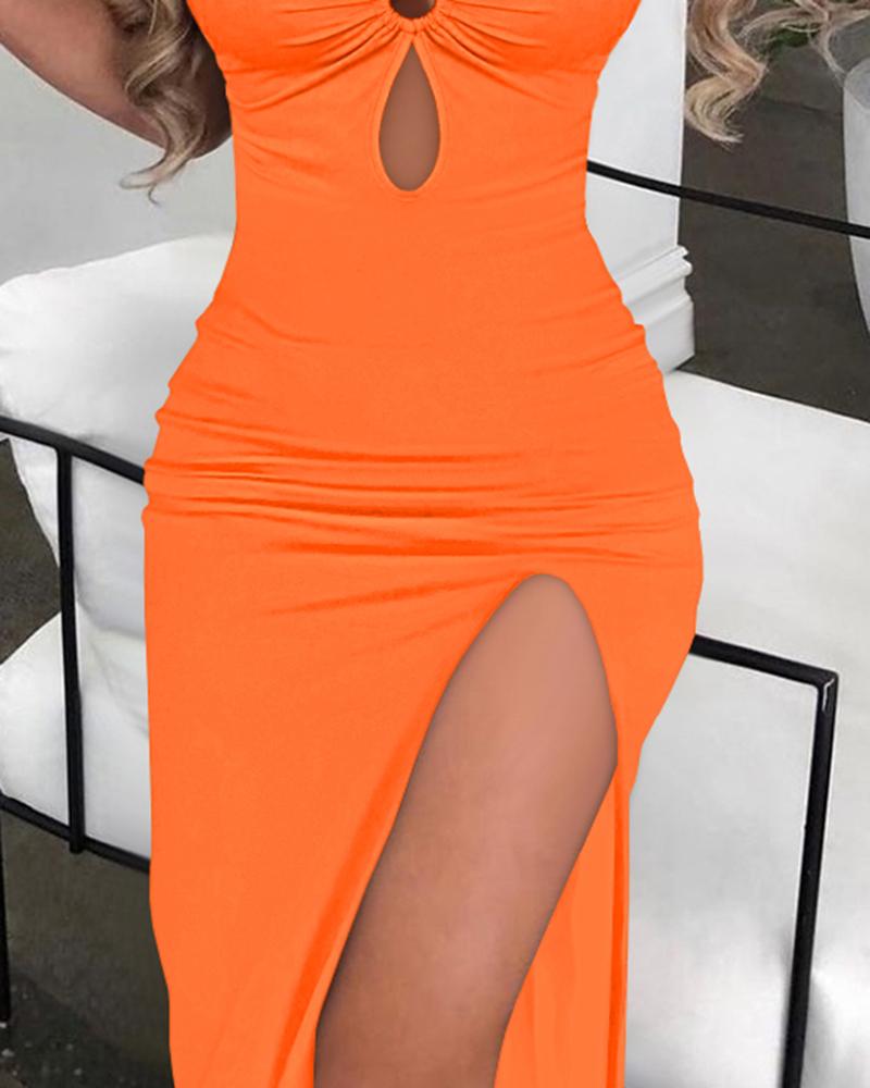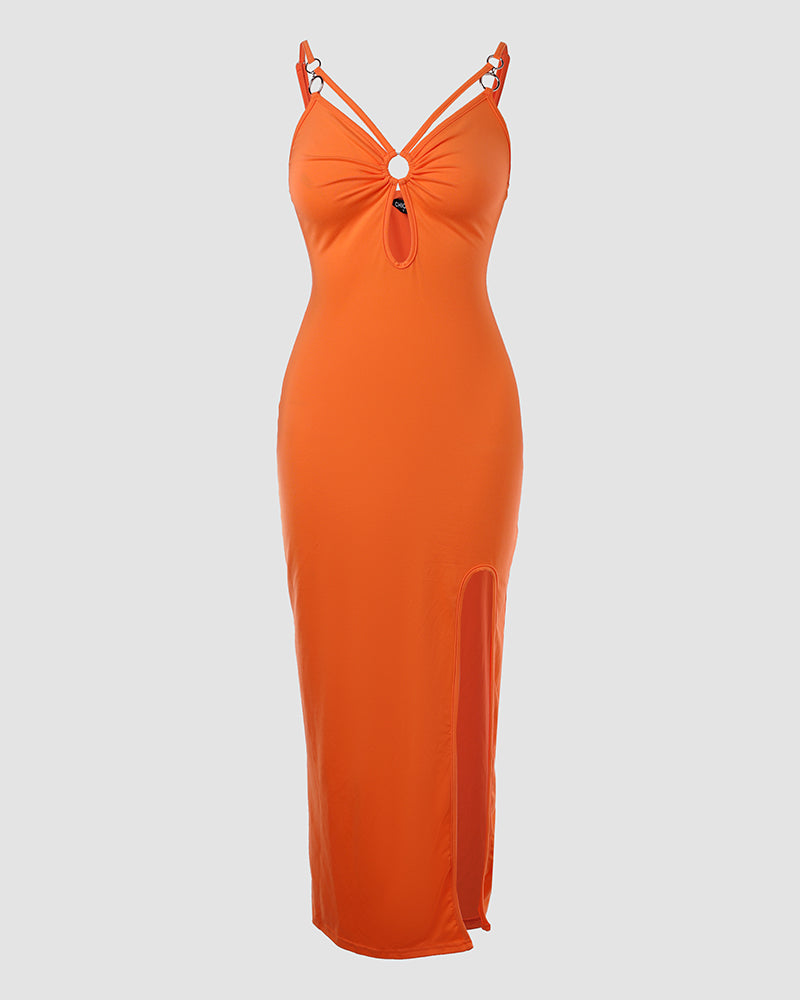 Casual Sleeveless Hollow Out Bodycon Dress Side High Slit Slim Fit Party Slip Dresses