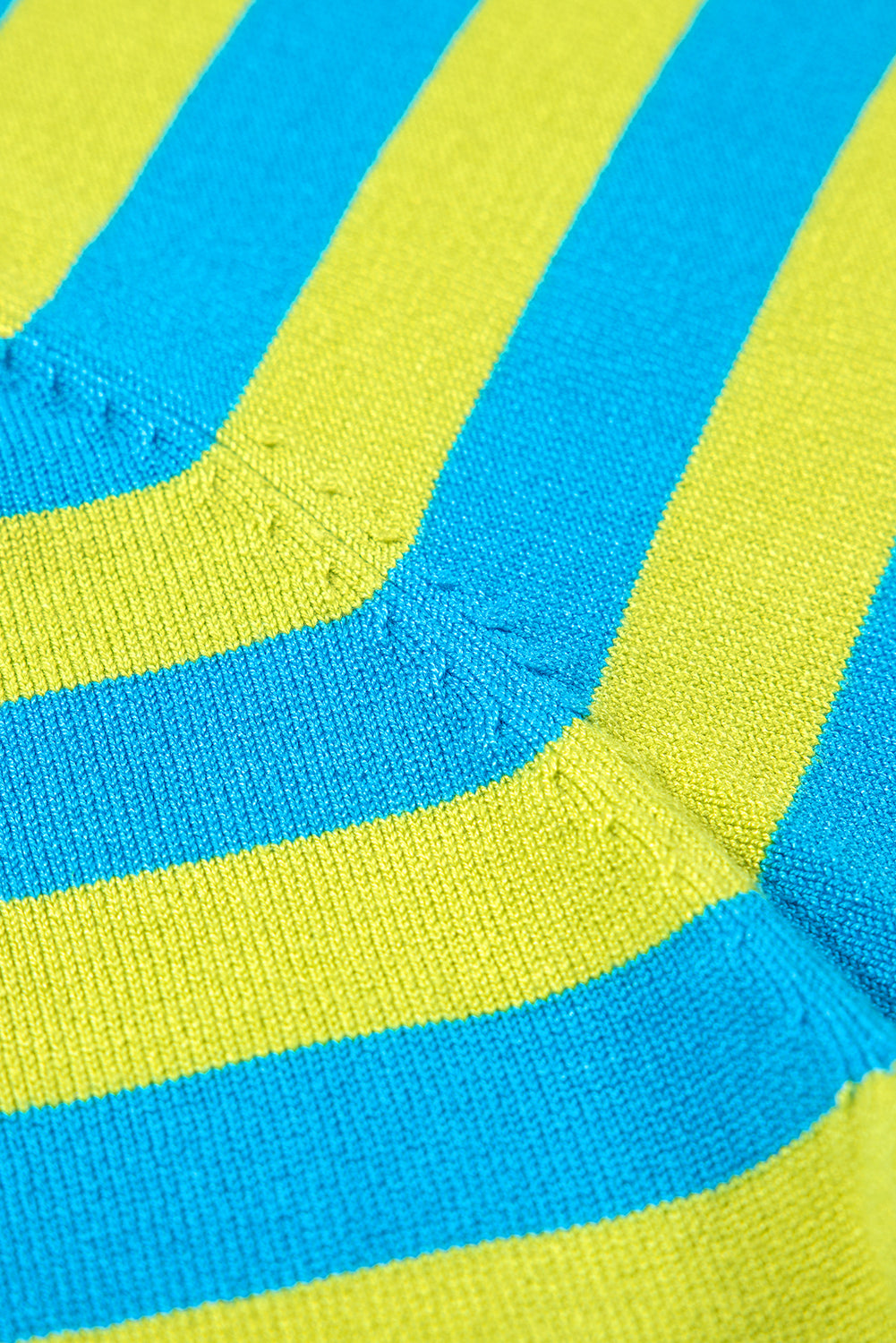 Green Stripe Crew Neck Drop Shoulder Casual Sweater