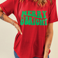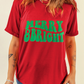 Red MERRY BRIGHT Letter Crew Neck Christmas T Shirt