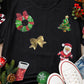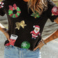 Black Sequin Christmas Essentials Graphic Crewneck T Shirt