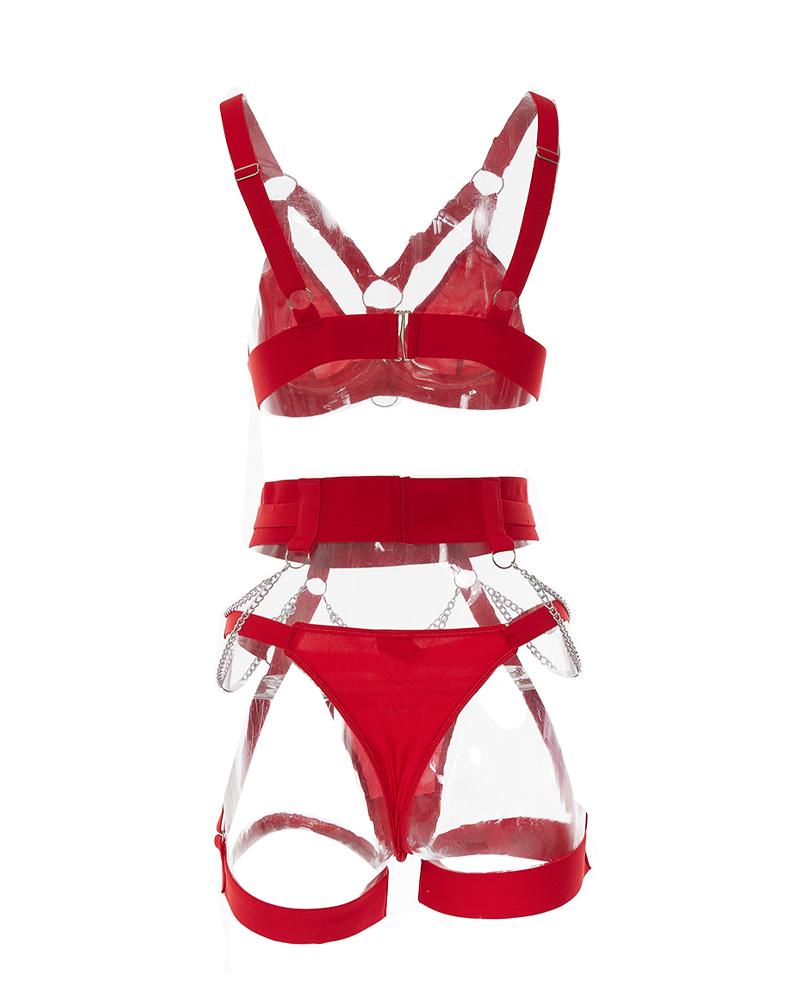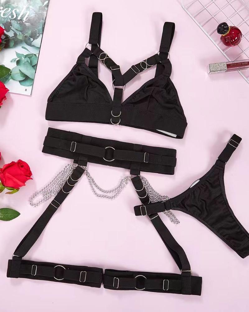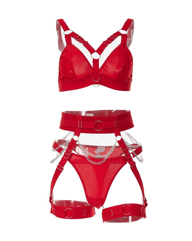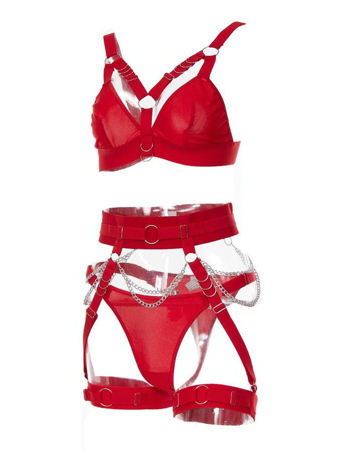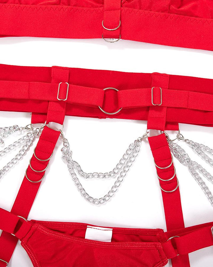 Elevate your lingerie collection with our Chain Decor Garter Lingerie Set! Adorned with stunning chain detailing, this set exudes luxury and sensuality. The perfect combination of edgy and elegant, it will make you feel confident and alluring. Upgrade your lingerie game and spice up your bedroom attire.