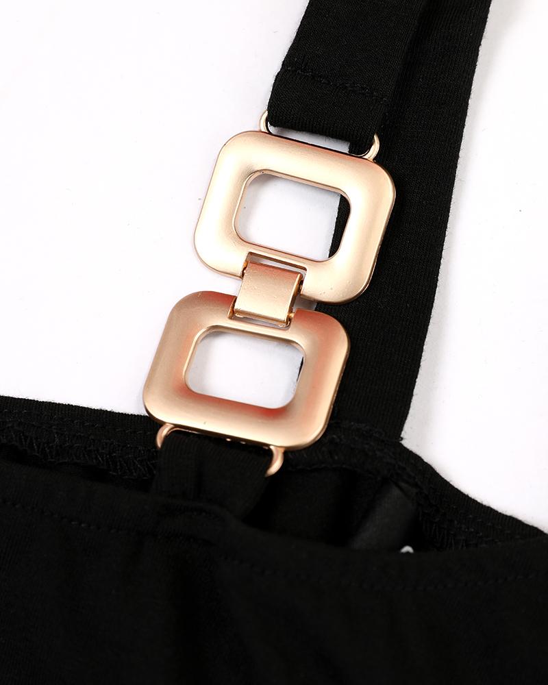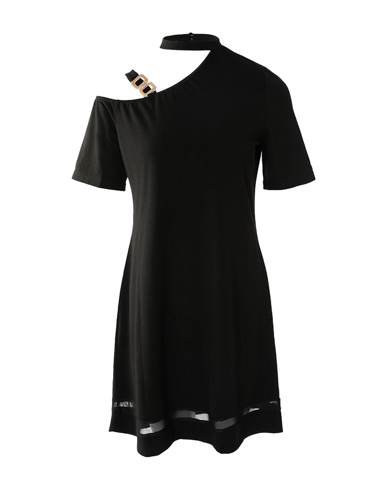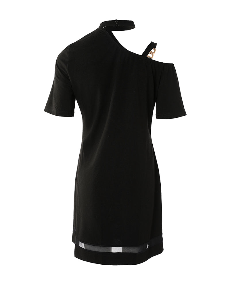 Chain Strap Cold Shoulder Contrast Mesh Casual Dress