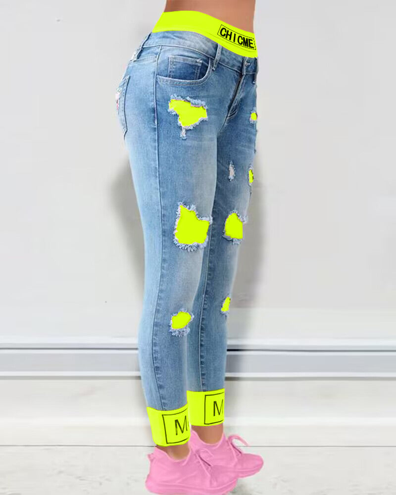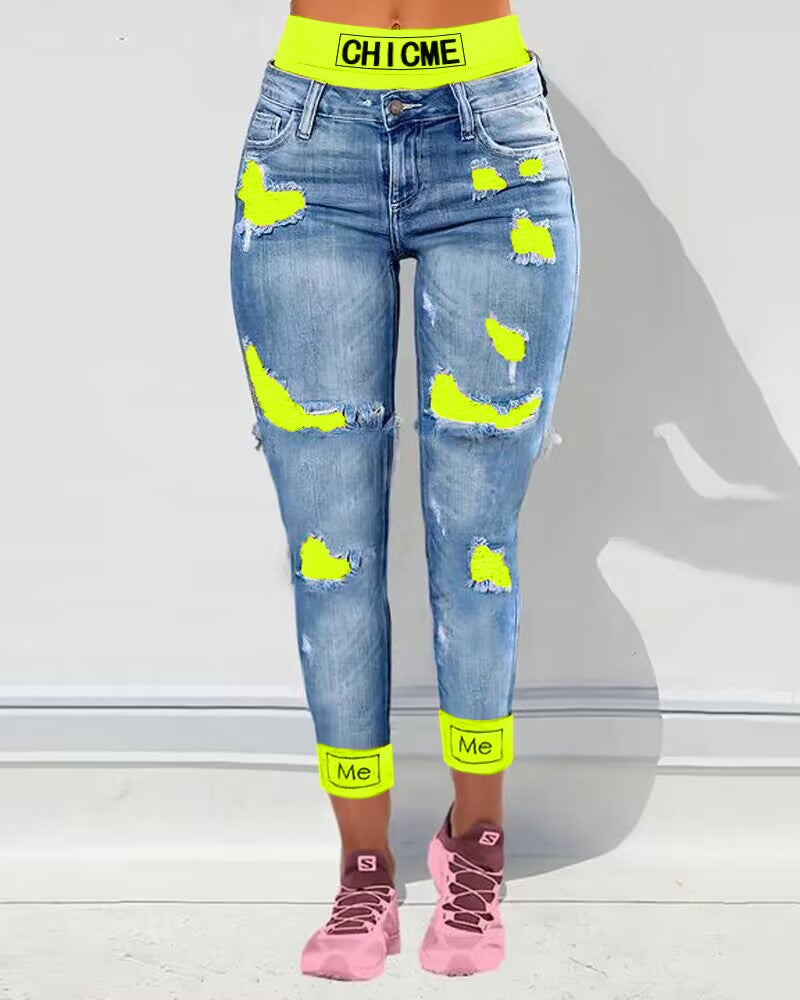 ChicMe Fake Two Piece Patchwork Cutout Ripped Jeans