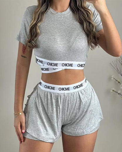 ChicMe Letter Tape Patch Crop Top & Shorts Set