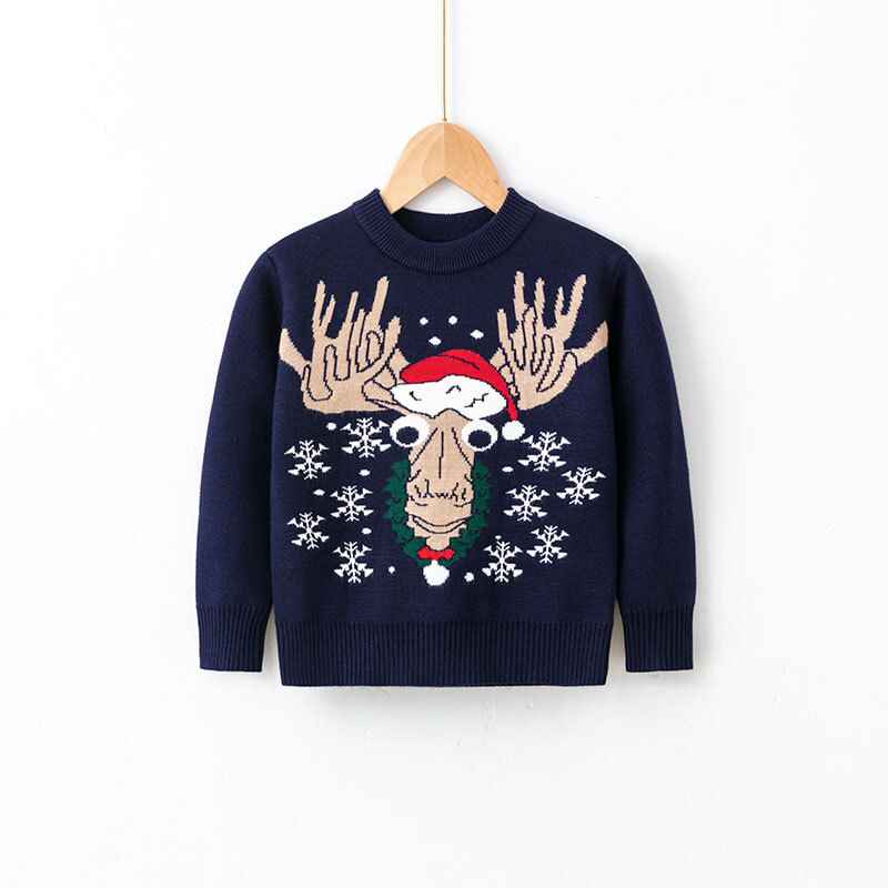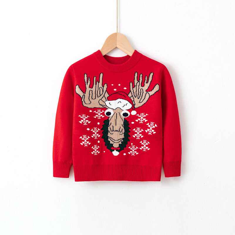 Girl's And Boy's Long Sleeve Knit Elk Christmas Sweater Tops V036
