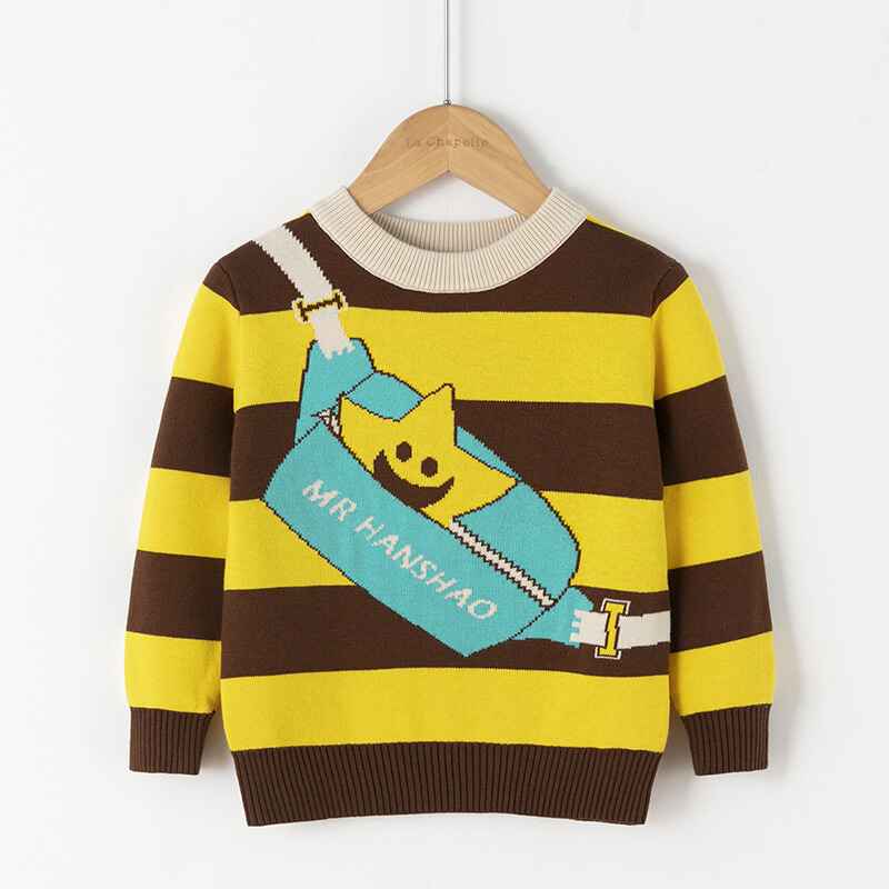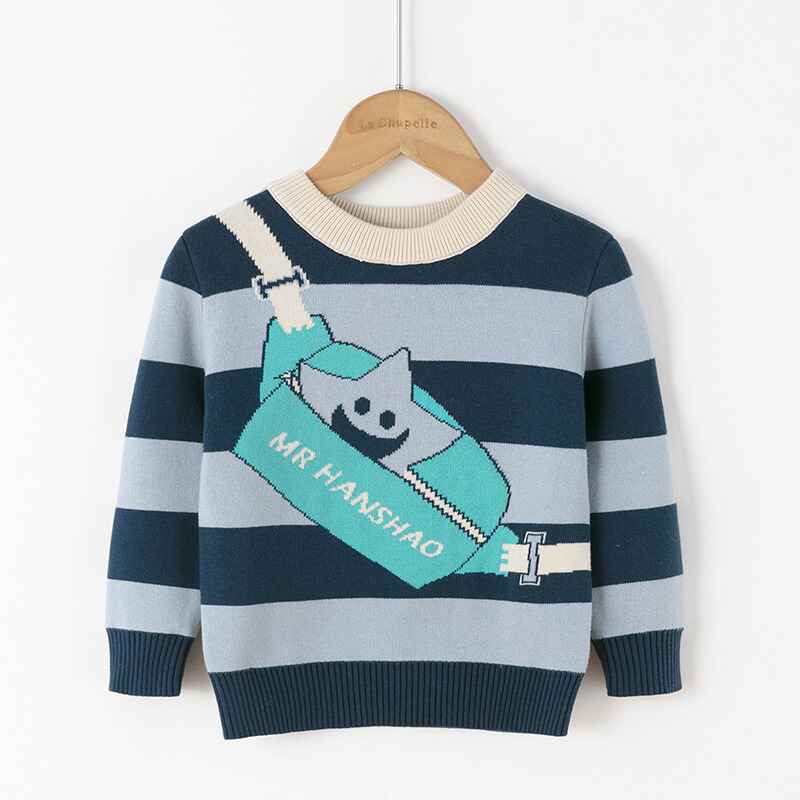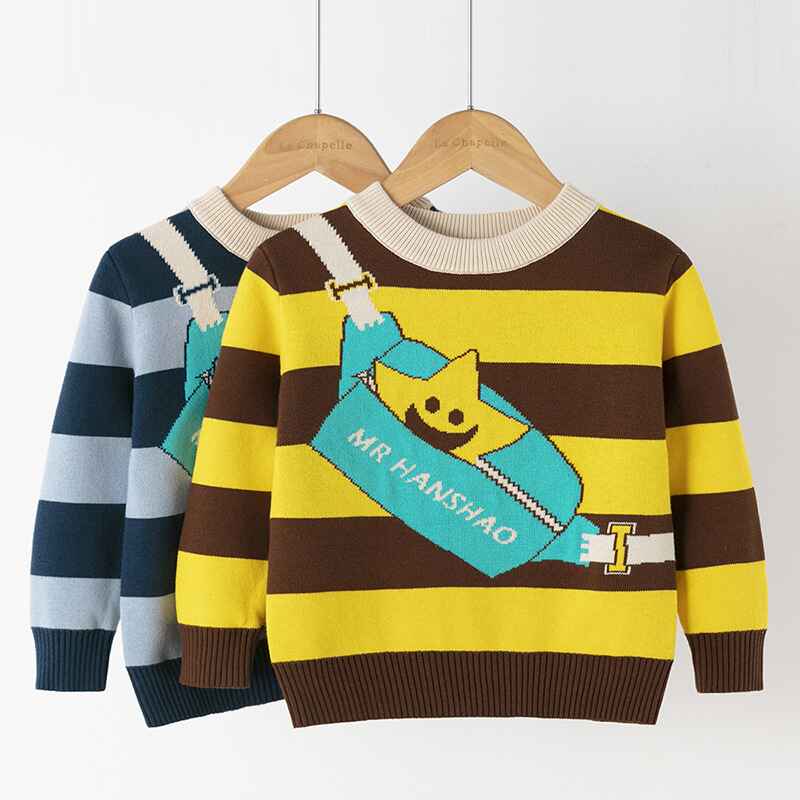 Kids Boys Cable Knit Sweater Long Sleeve Round Collar Striped Sweatshirt Baby Cotton Pullover Sweater Spring V051