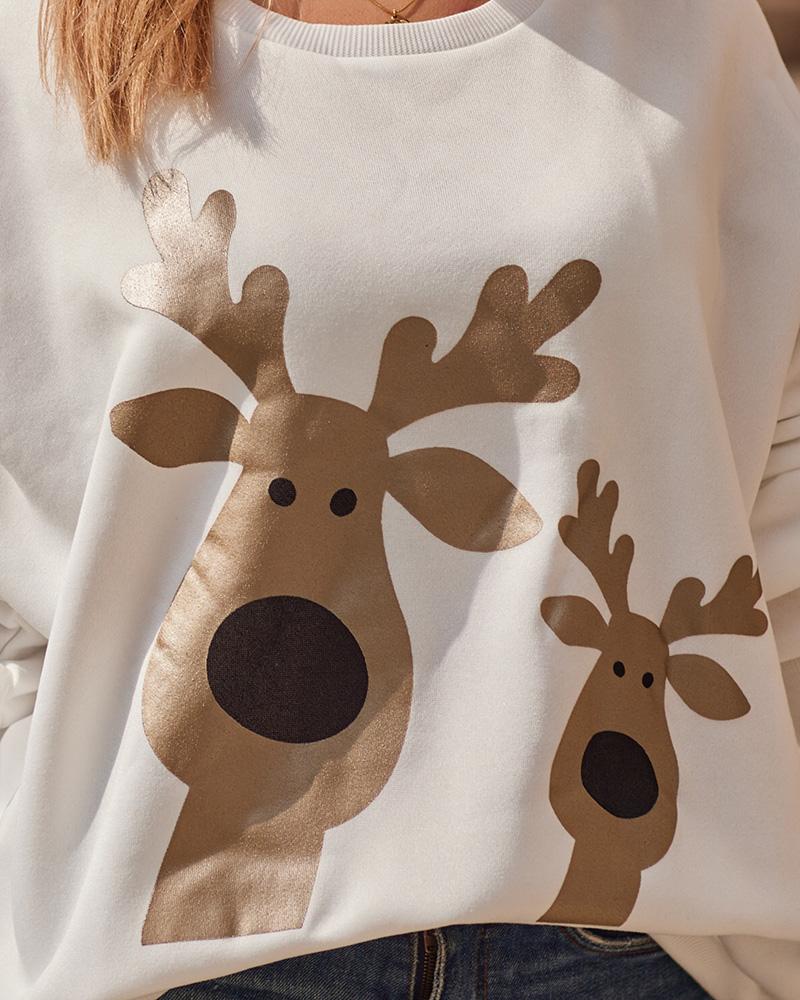 Christmas Cartoon Elk Metallic Long Sleeve Sweatshirt