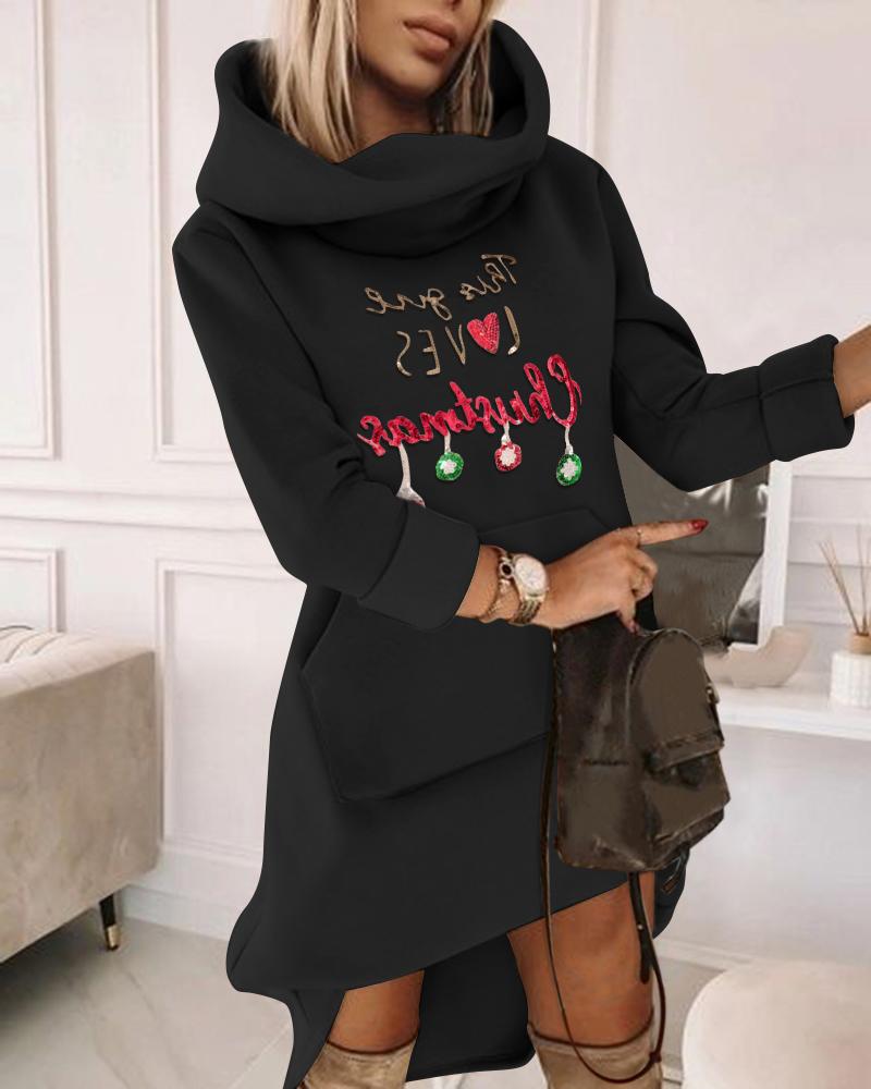 Christmas Contrast Sequin Pattern Sweatshirt Dress