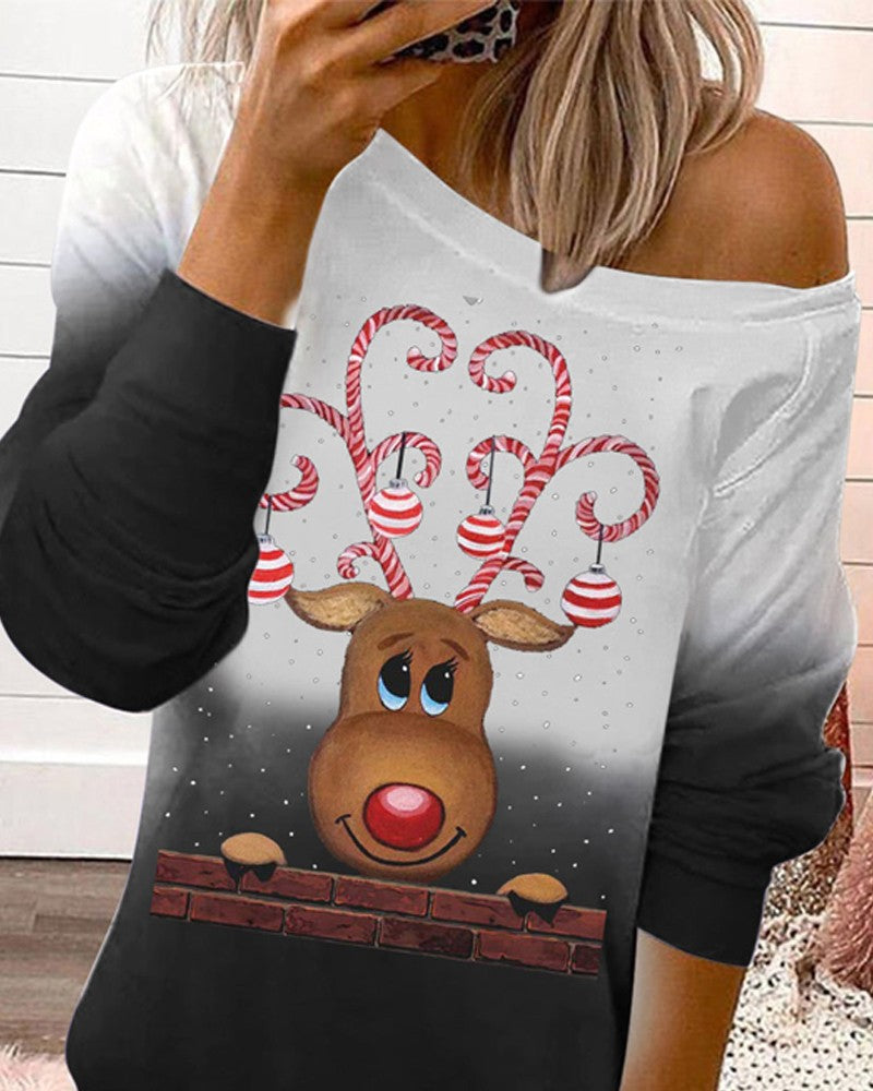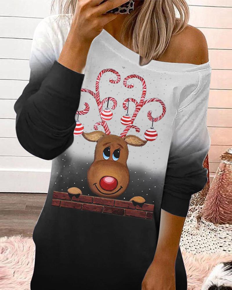 Christmas Letter Elk Print Long Sleeve Sweatshirt Dress