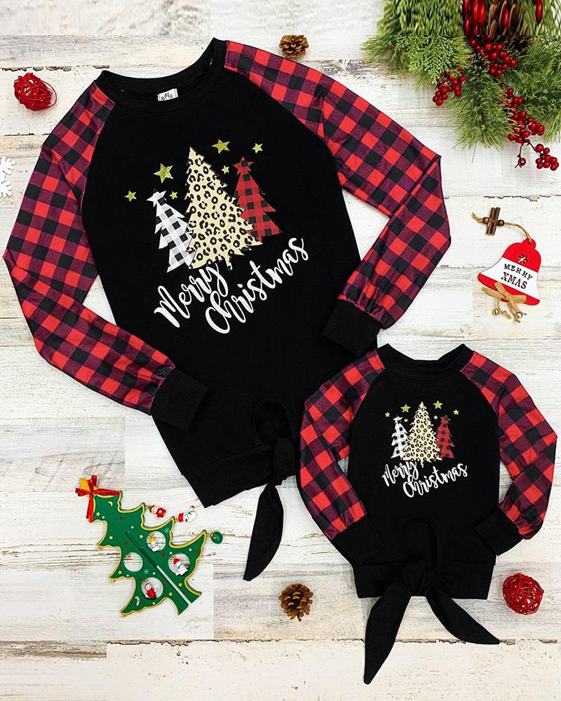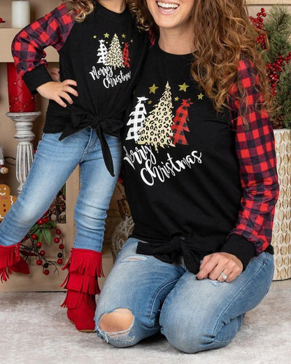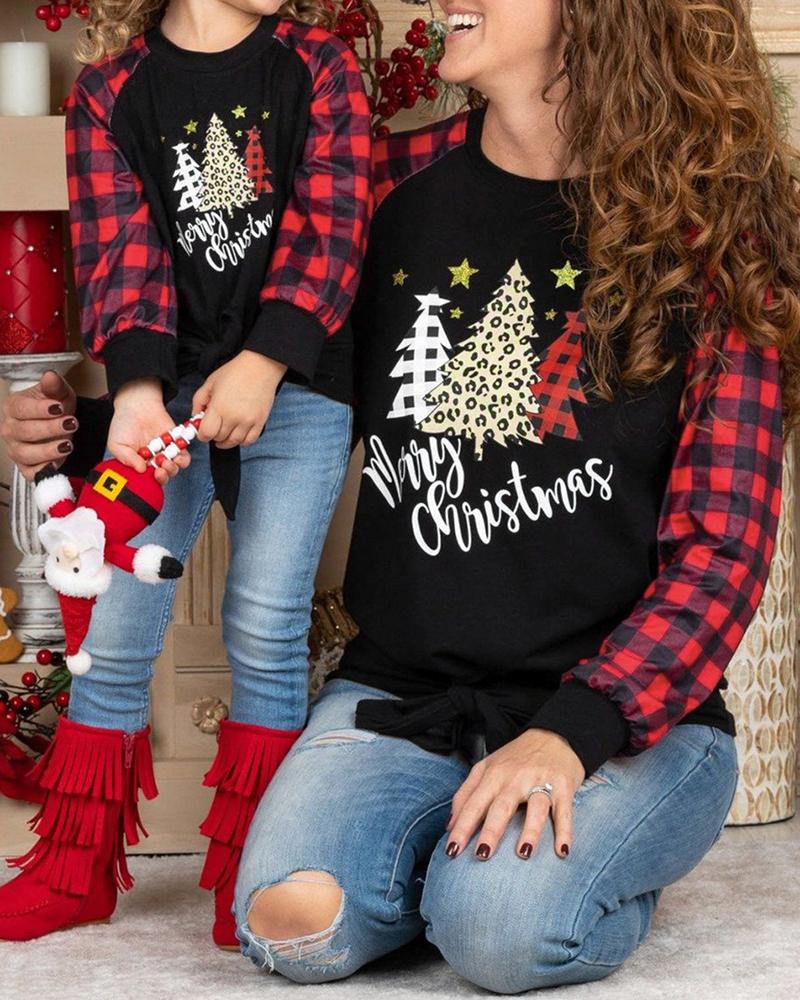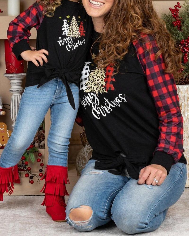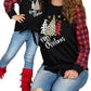Christmas Long Sleeve Tree Letter Plaid Print Top