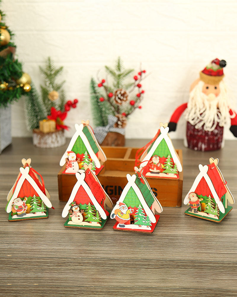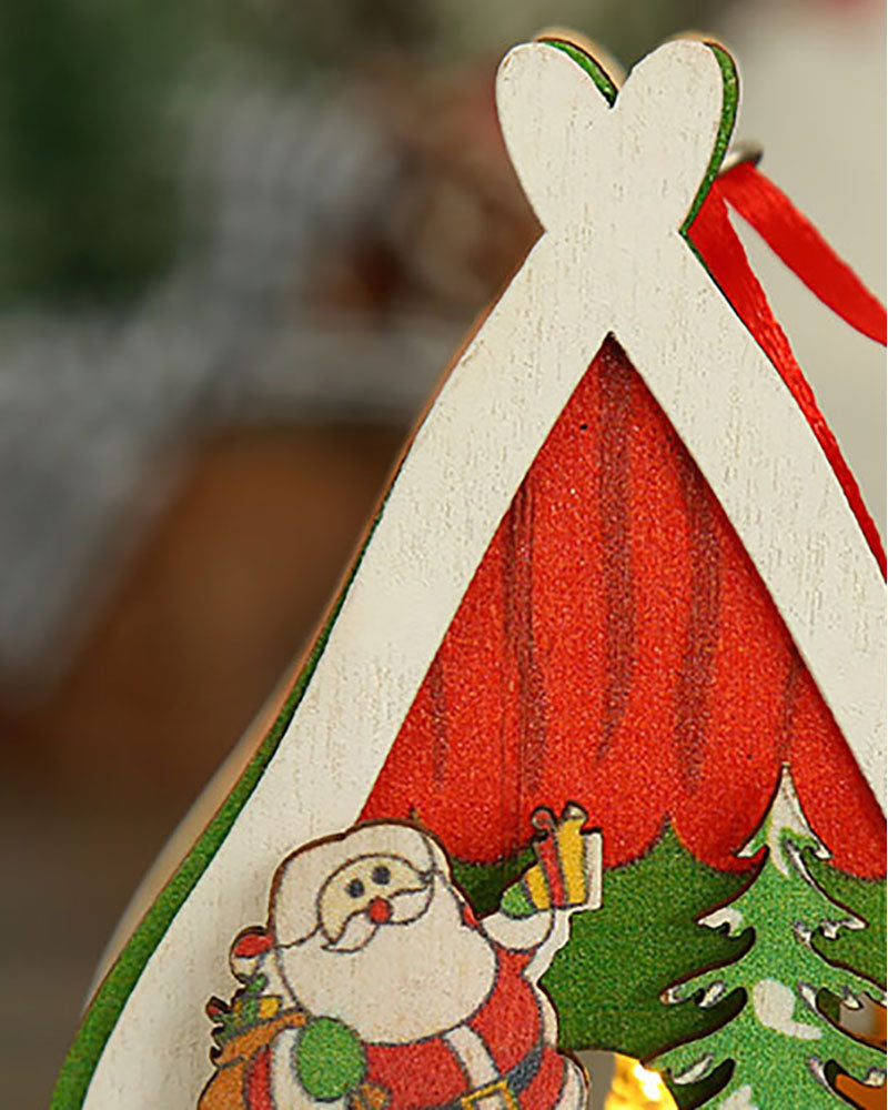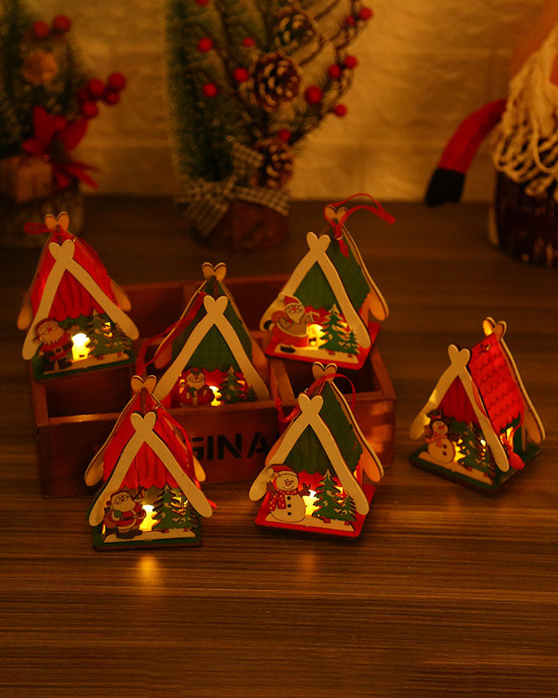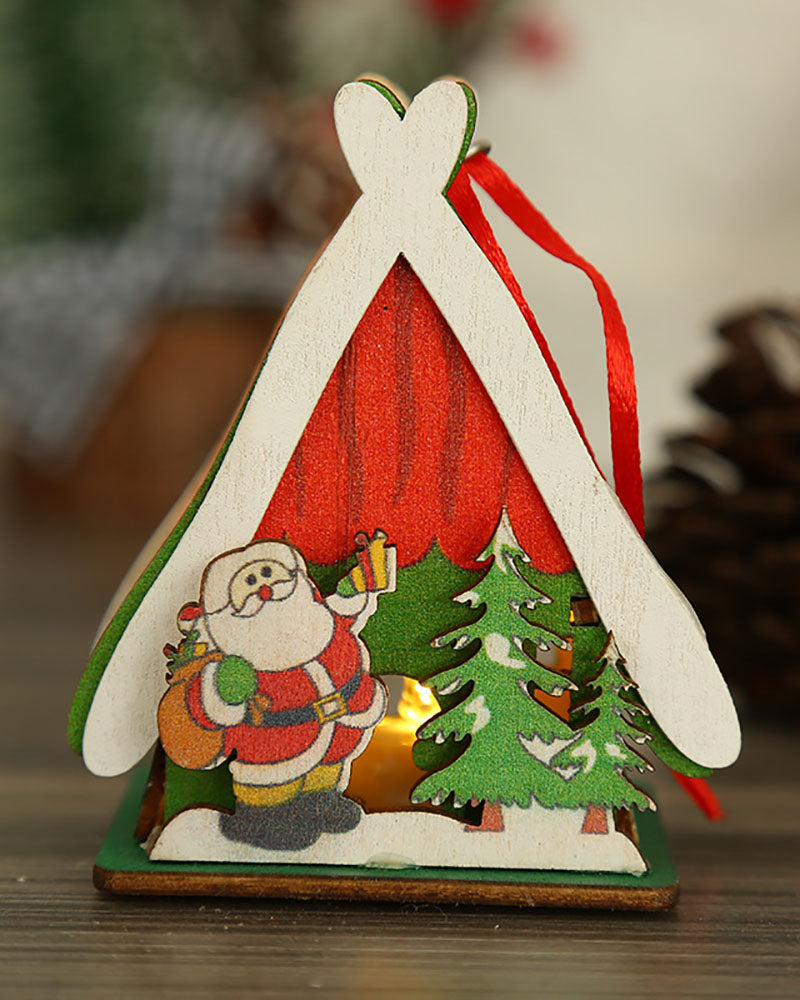 Christmas Luminous Wooden House Creative Small House Ornament Home Party Christmas Tree Pendant