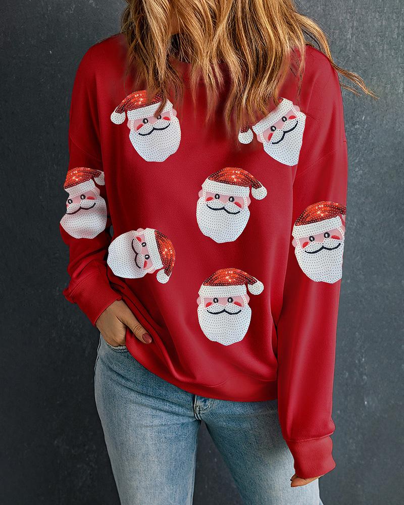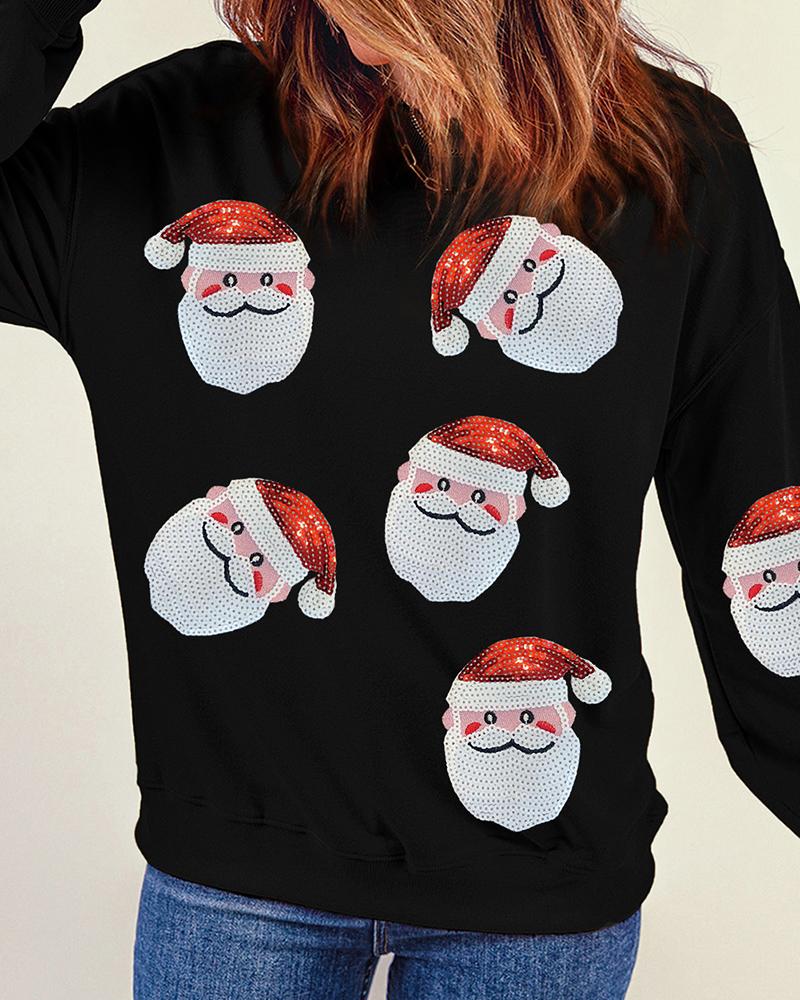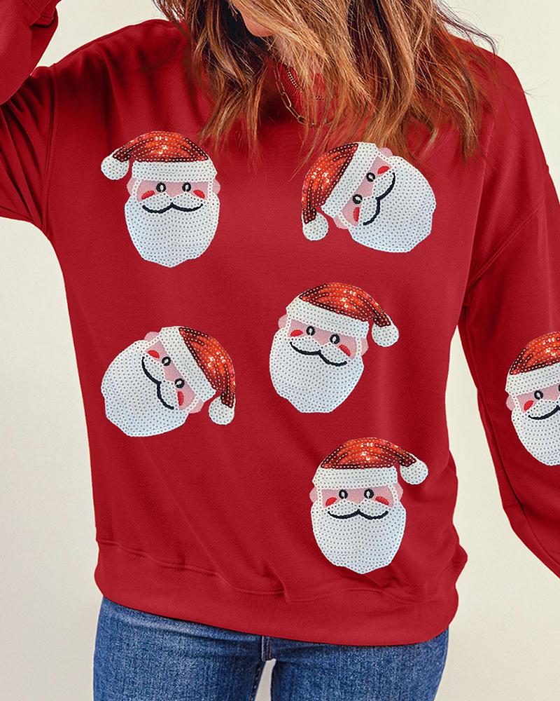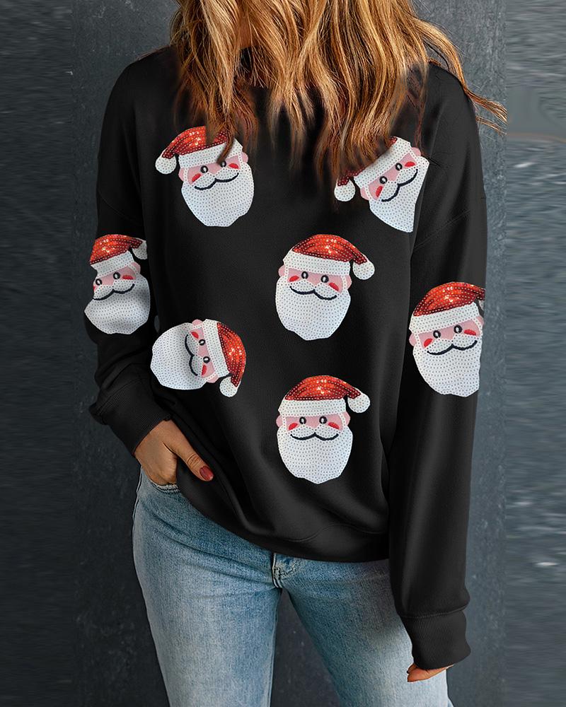 Christmas Santa Claus Pattern Contrast Sequin Sweatshirt