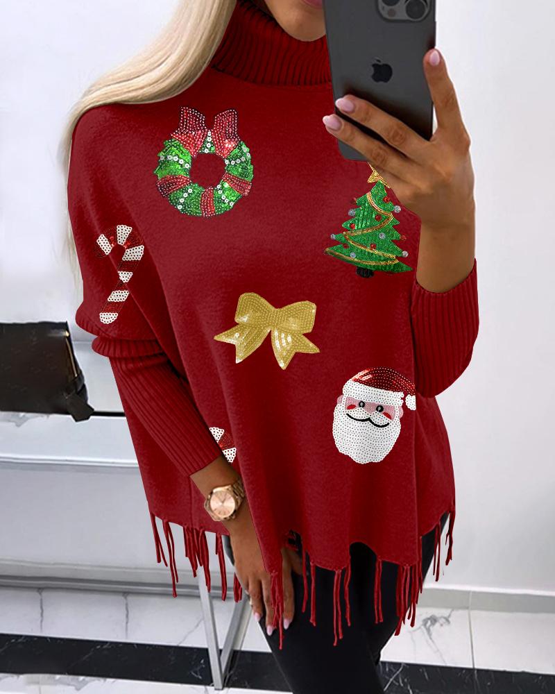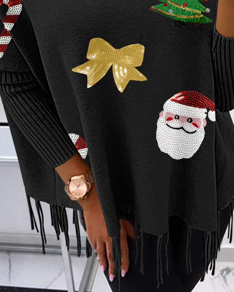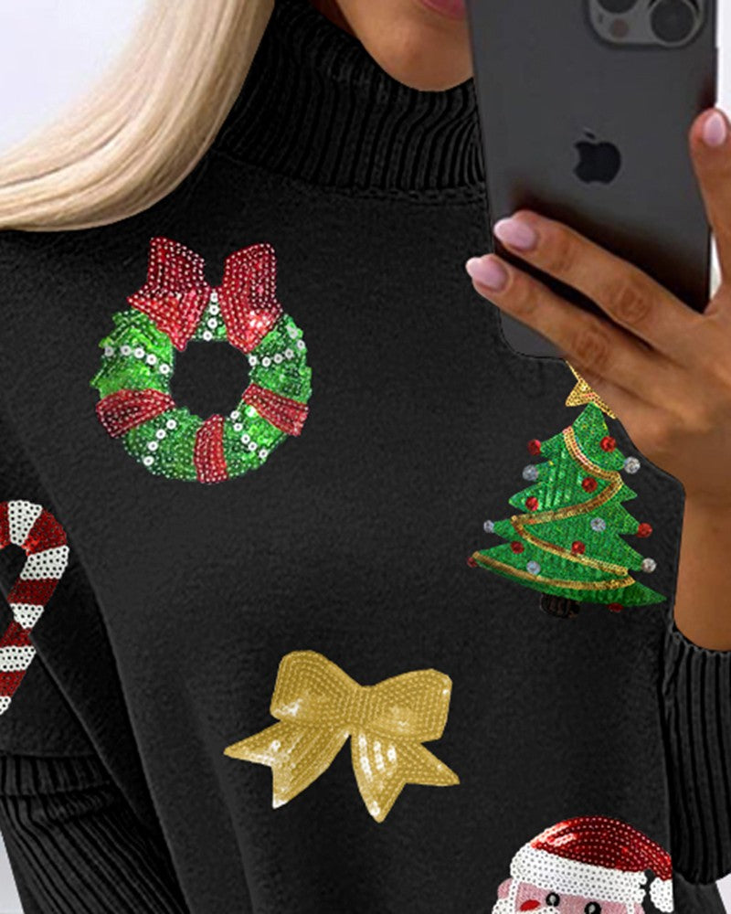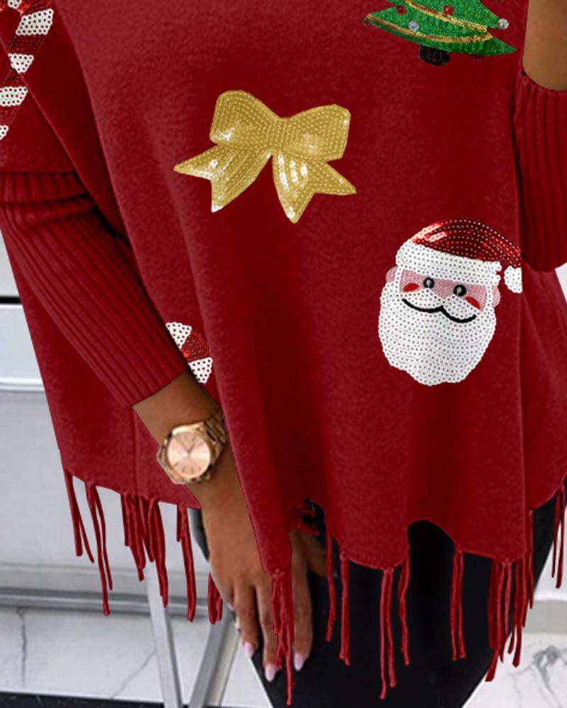 Christmas Santa Claus Wreath Pattern Contrast Sequin Sweater