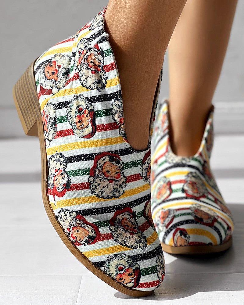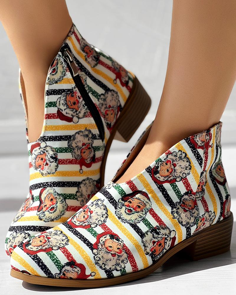Christmas Santa Print Striped Ankle Boots