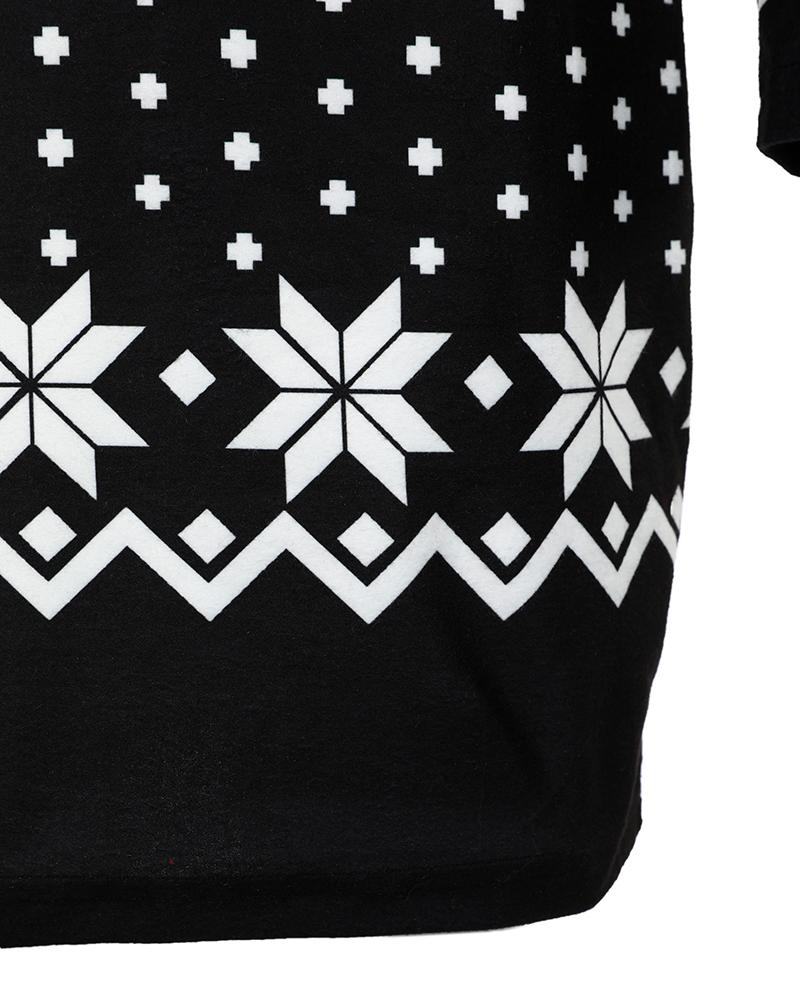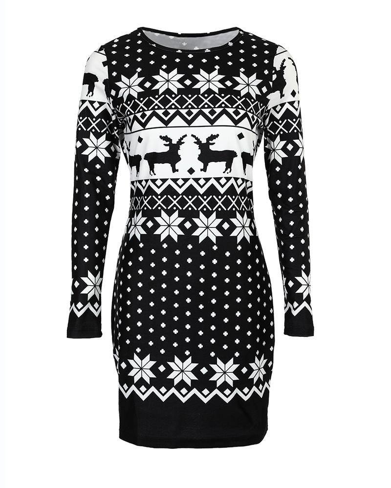 Christmas Snowflake Elk Print Crewneck Bodycon Dress Slim Fit Long Sleeve Mini Dress
