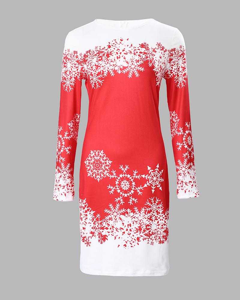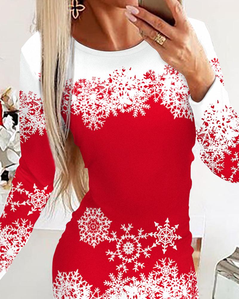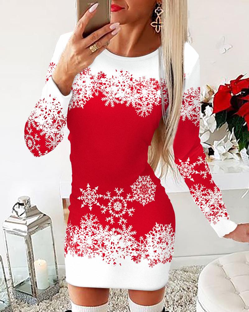 Christmas Snowflake Print Long Sleeve Bodycon Dress