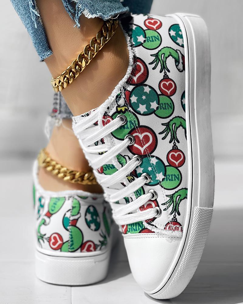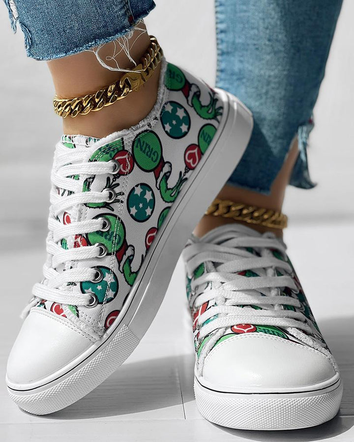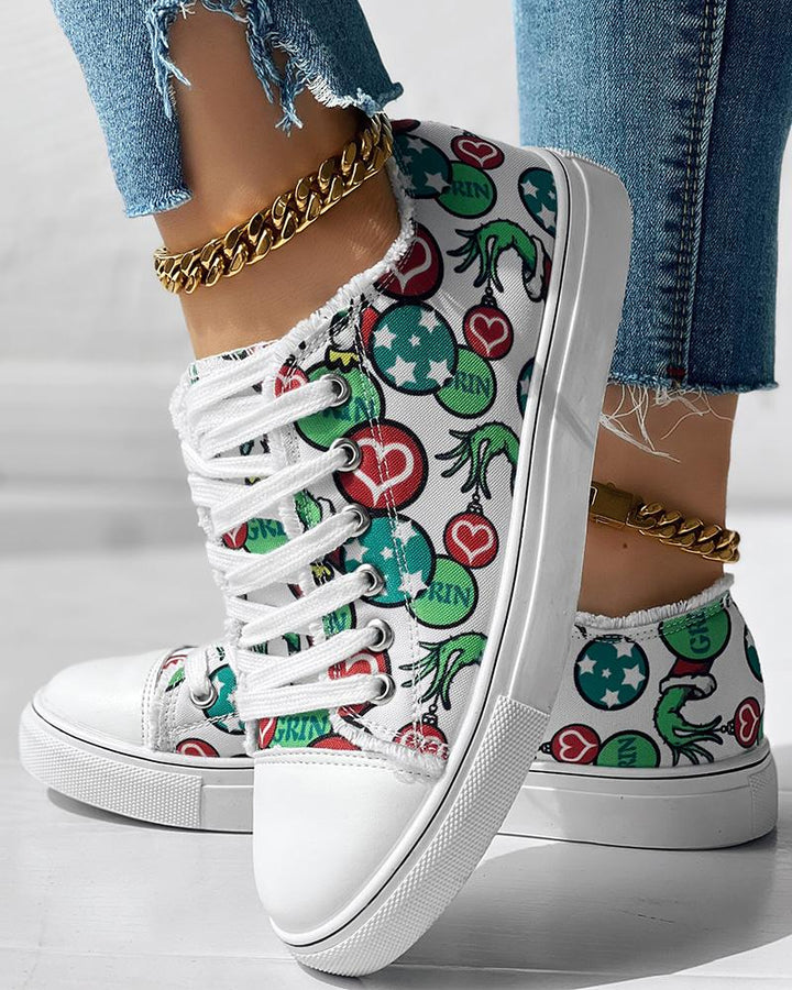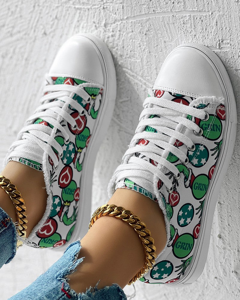 Christmas Thief Graphic Print Raw Hem Canvas Sneakers