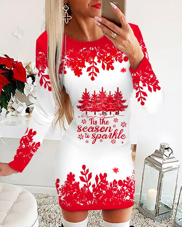 Christmas Tis The Season To Sparkle Graphic Print Bodycon Dress