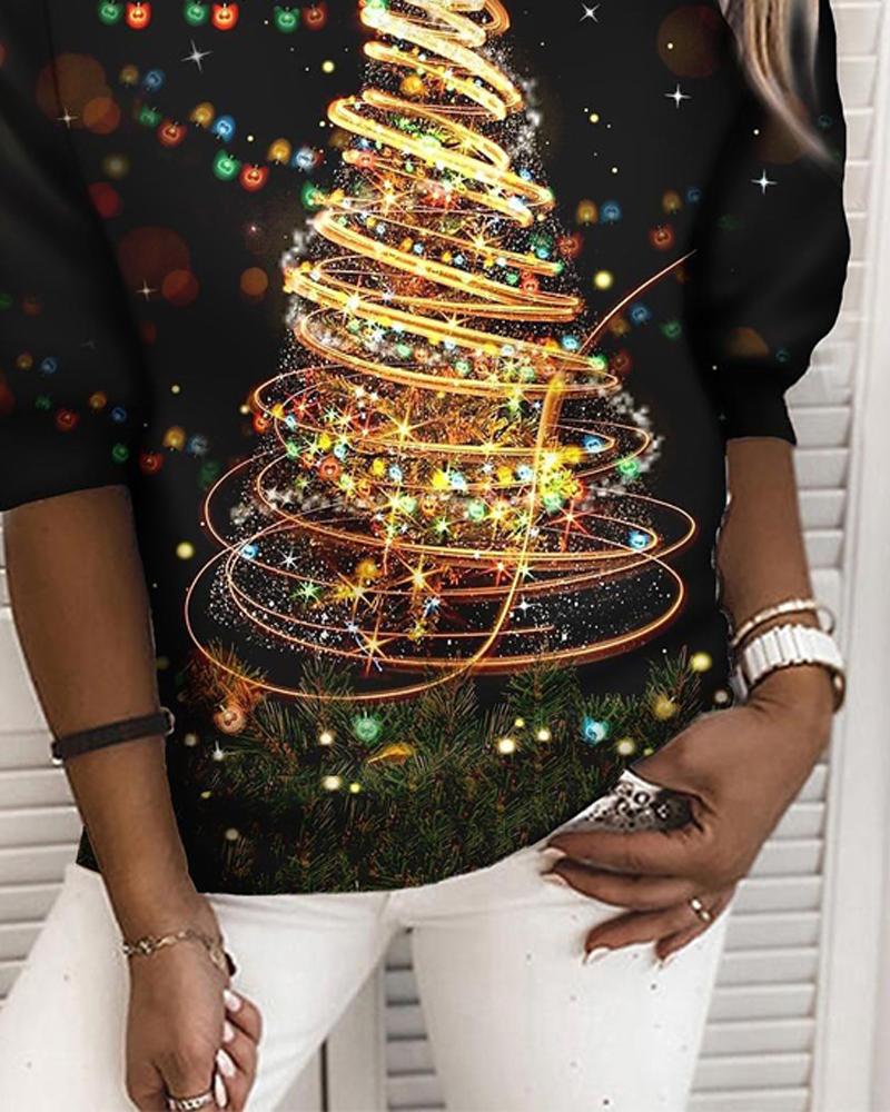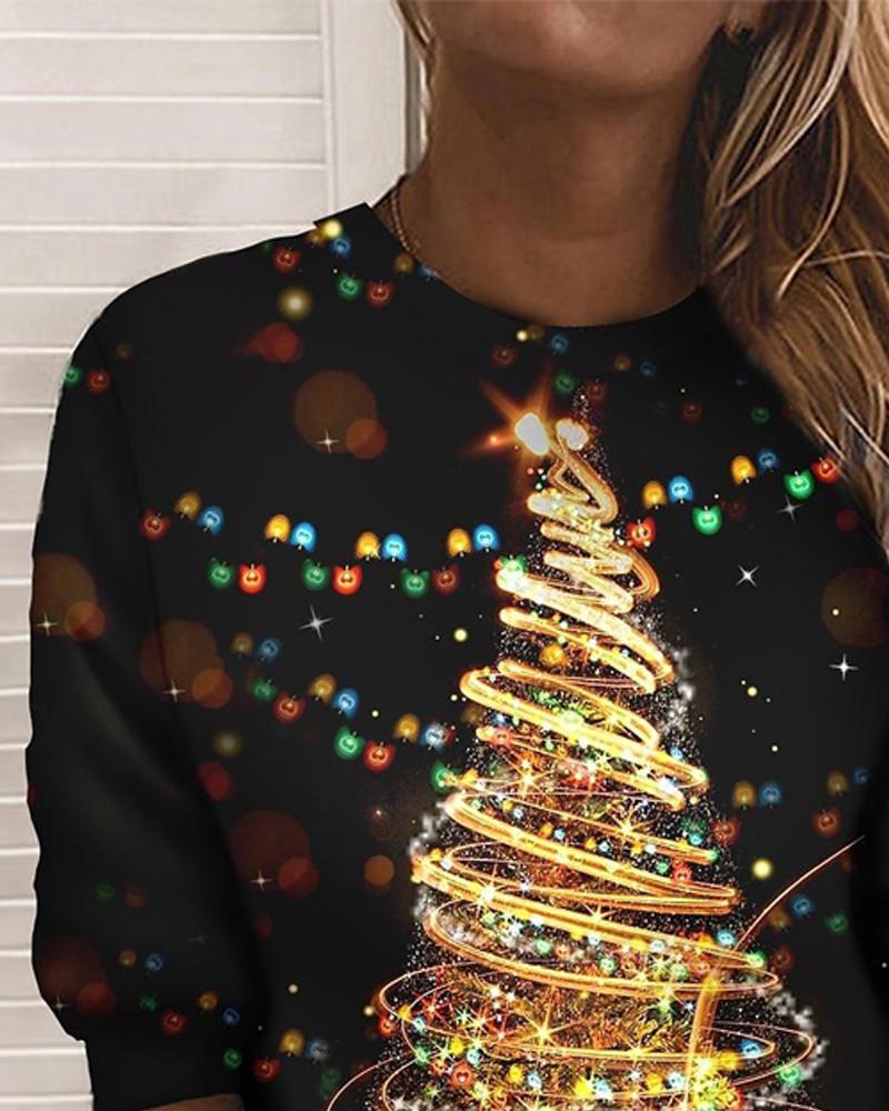 Christmas Tree Print Long Sleeve Sweatshirt
