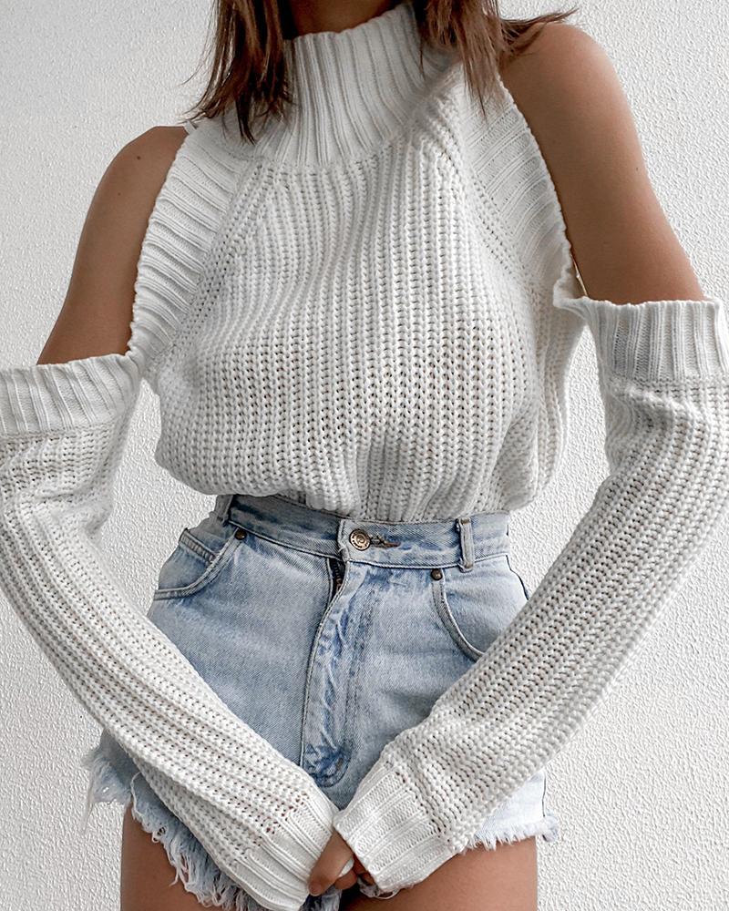 Cold Shoulder High Neck Long Sleeve Knit Sweater