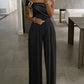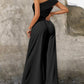 Cold Shoulder Ruched Buckle Wide Leg Jumpsuit