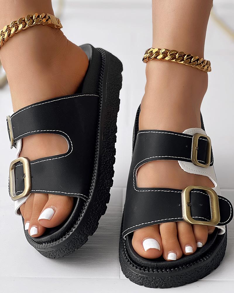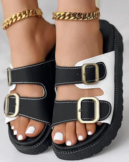 Colorblock Buckled Double Strap Slippers Outdoor Sandals