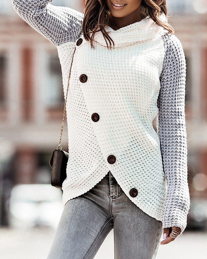 Colorblock Buttoned Asymmetrical Knit Sweater