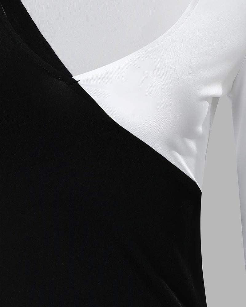 Colorblock Cold Shoulder Cutout Long Sleeve Top