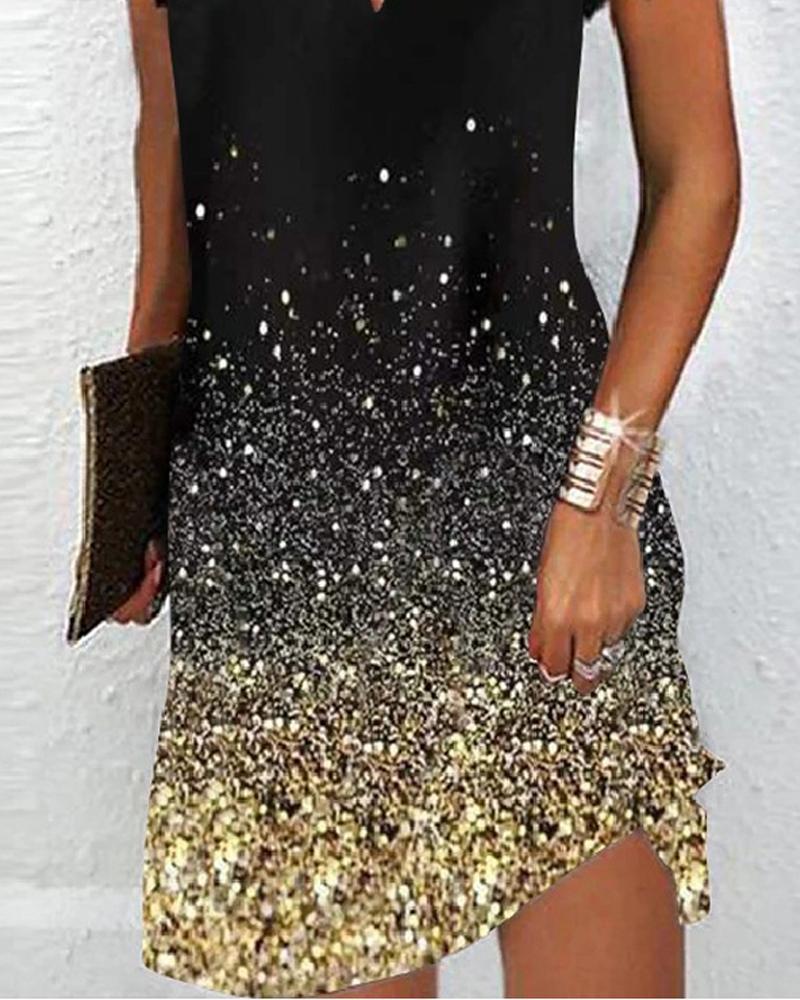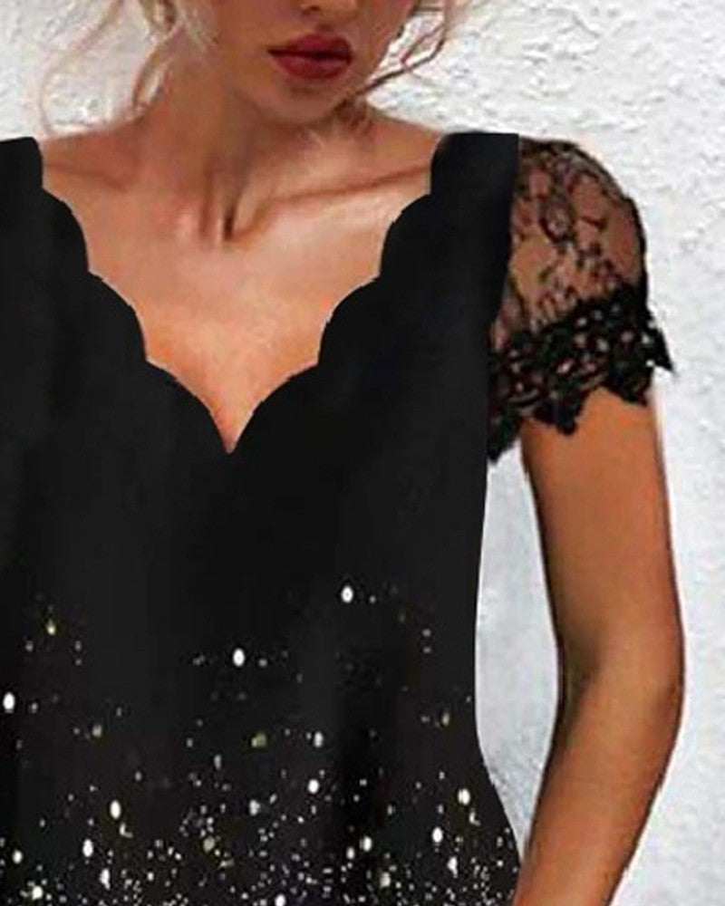 Colorblock Contrast Lace Scallop Trim Casual Dress