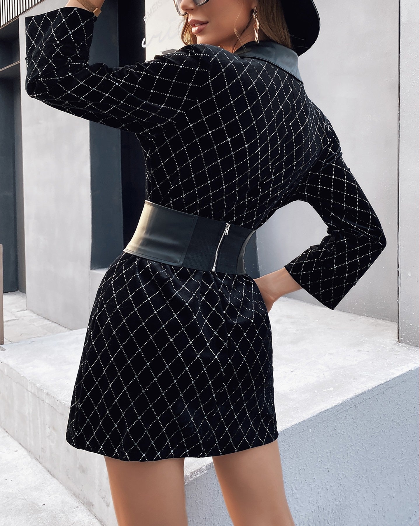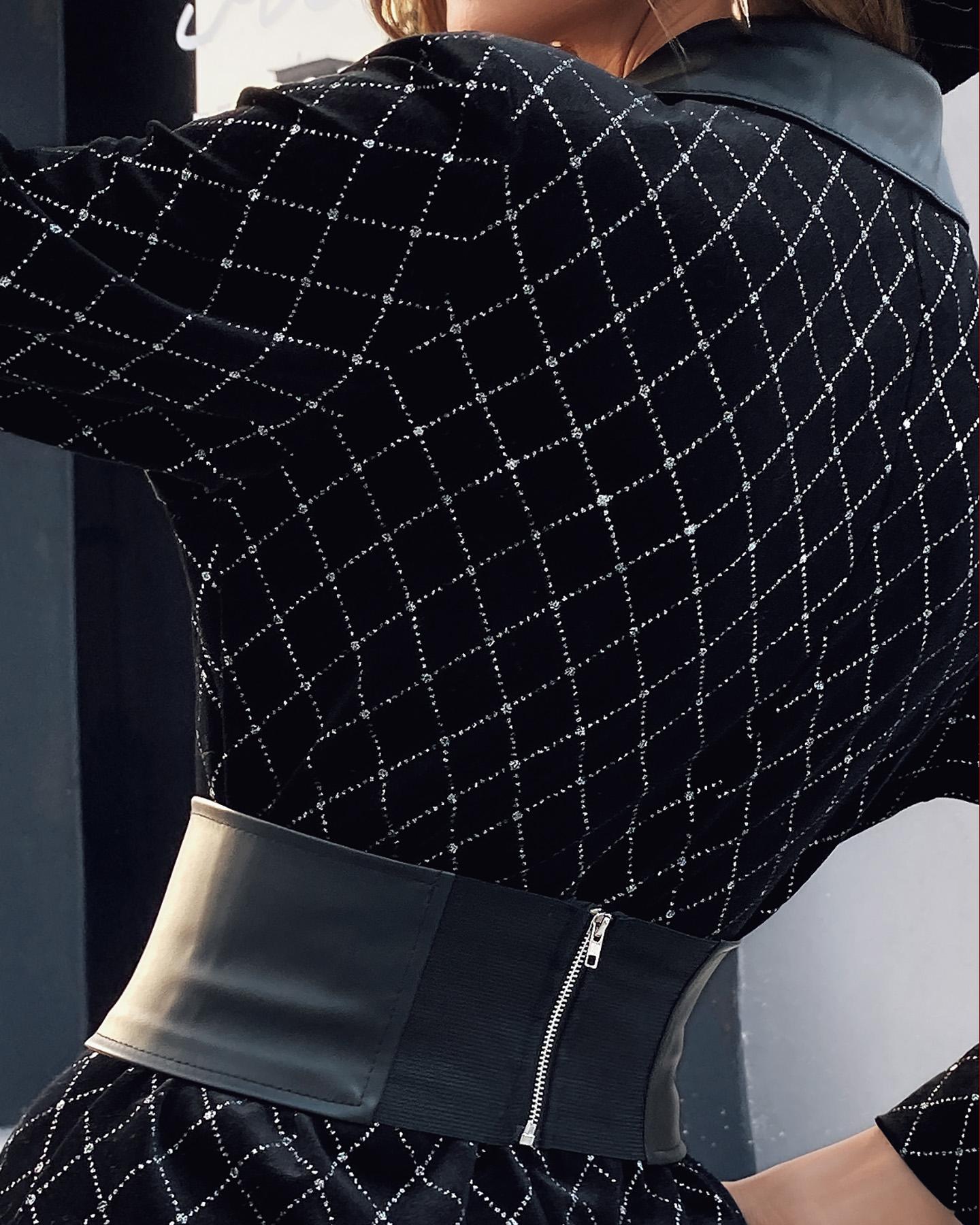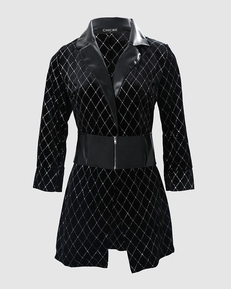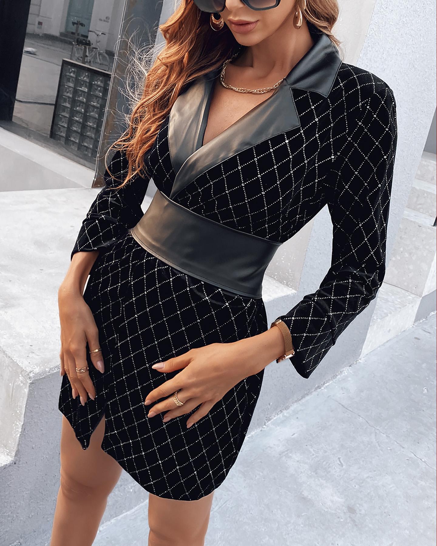 Colorblock Glitter PU Leather Blazer Dress
