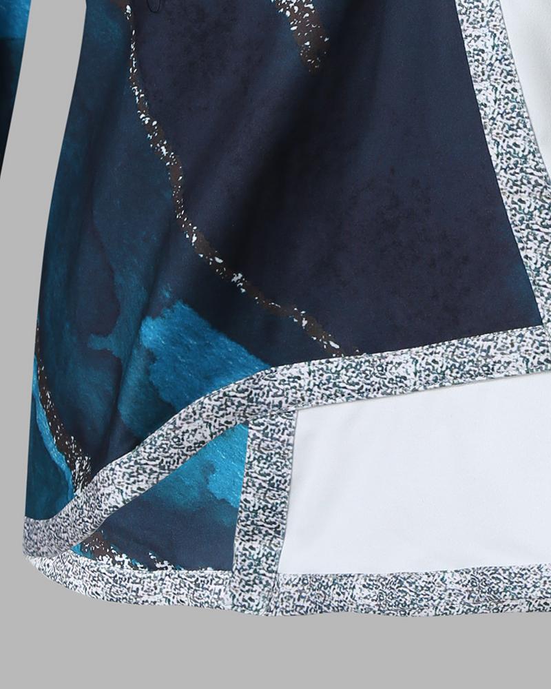 Colorblock Green Marble Print Asymmetrical Hem Top