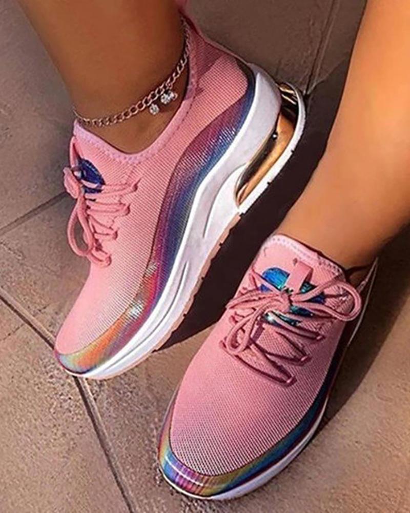 Colorblock Lace up Breathable Sneakers