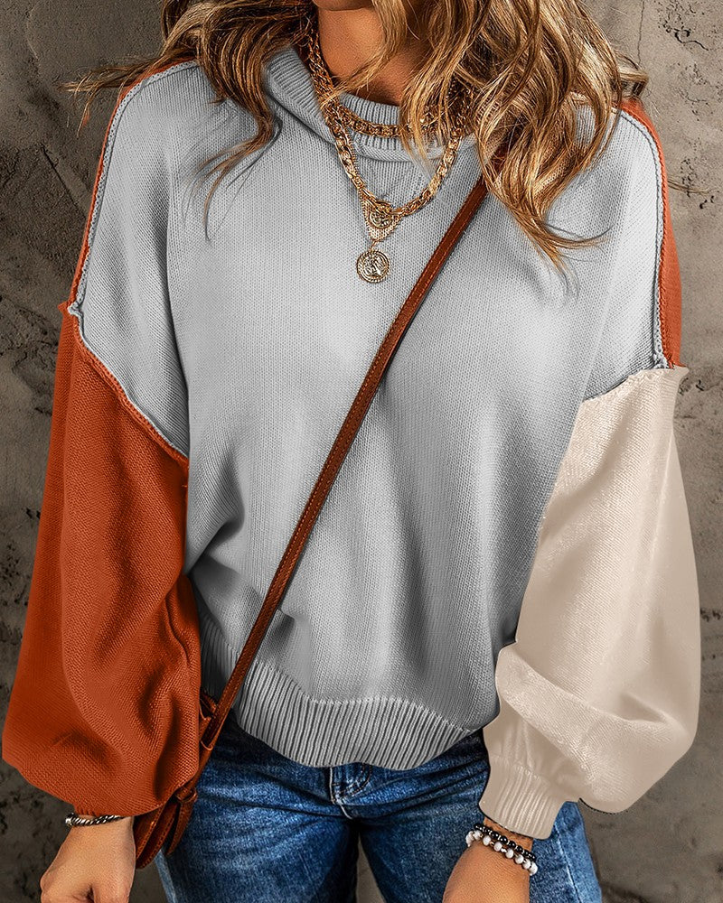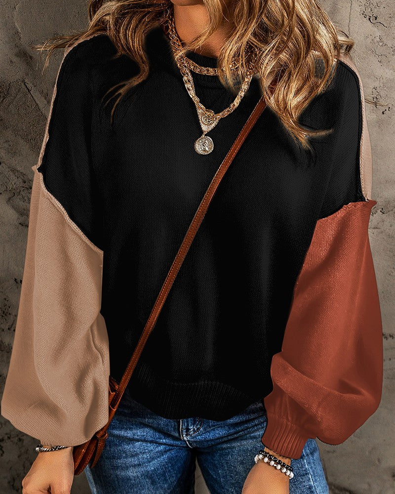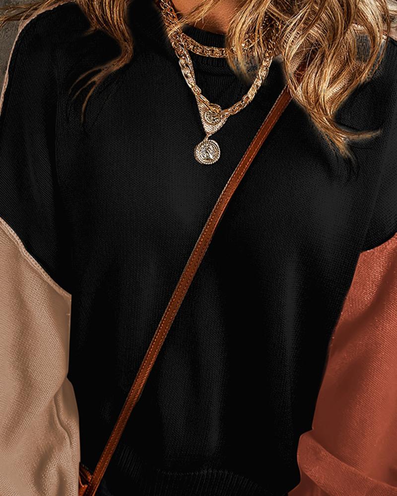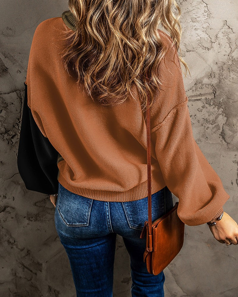 Colorblock Lantern Sleeve Piping Knit Sweater