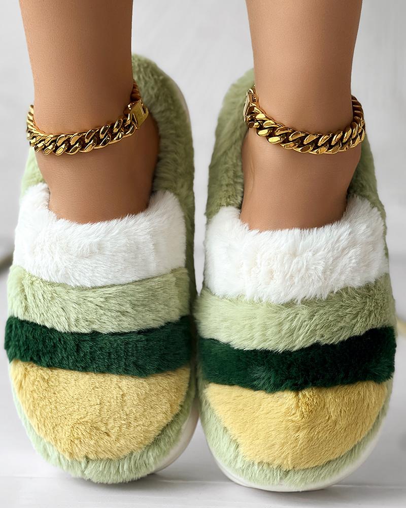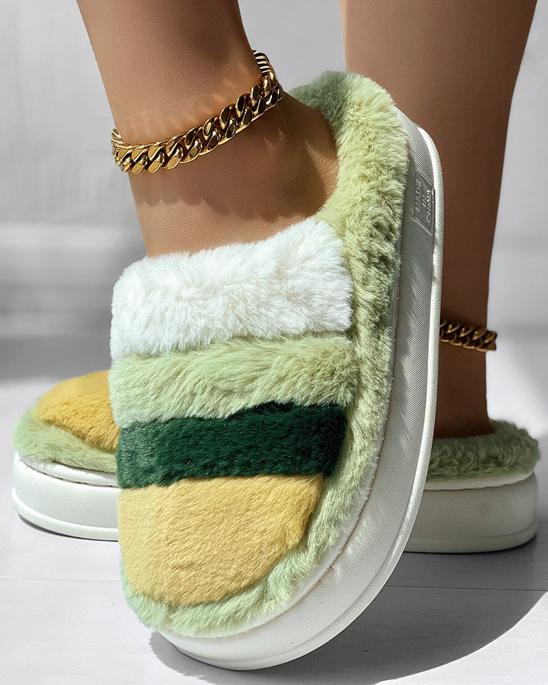Colorblock Platform Fluffy Winter Thermal Slippers