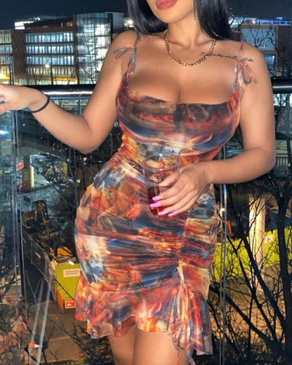 Colorblock Ruffles Ruched Bodycon Dress